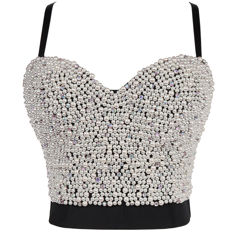 Haut tube en perles à bulles et diamants, soutien-gorge clouté fait à la main, gilet gainant pour le corps, costume de scène tendance