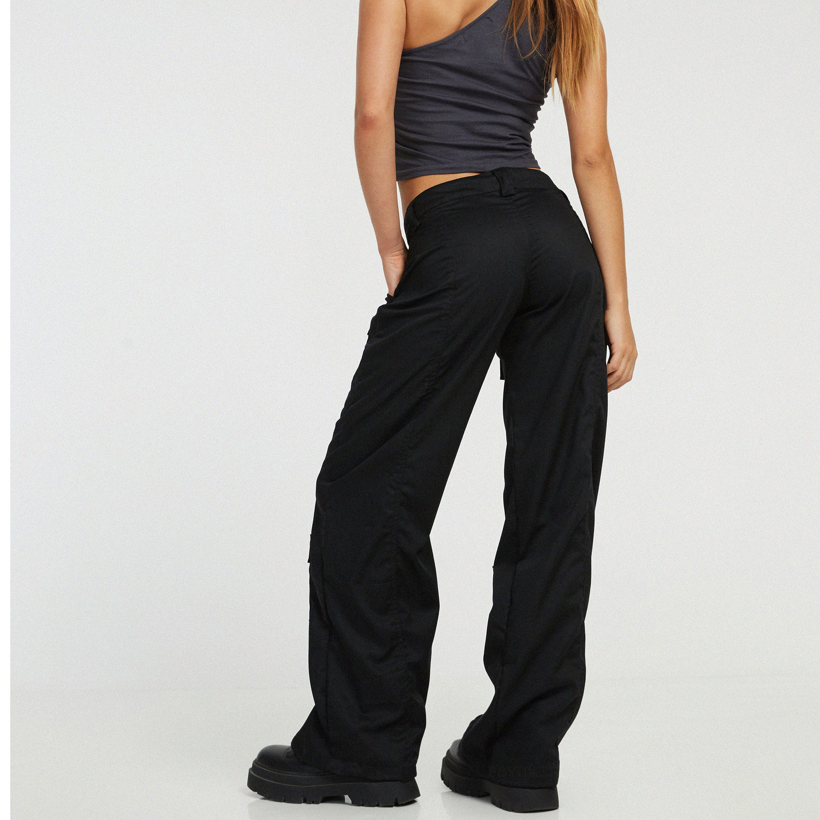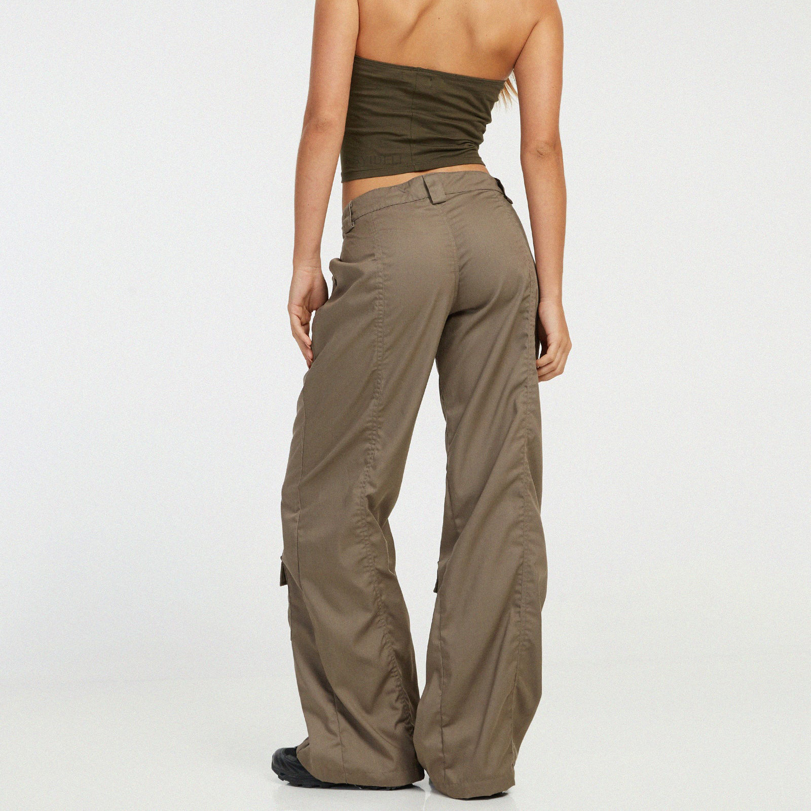 Pantalon décontracté avec poches, taille basse, style rétro, coupe droite, style cargo