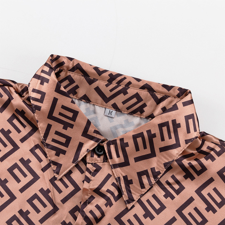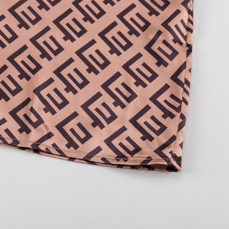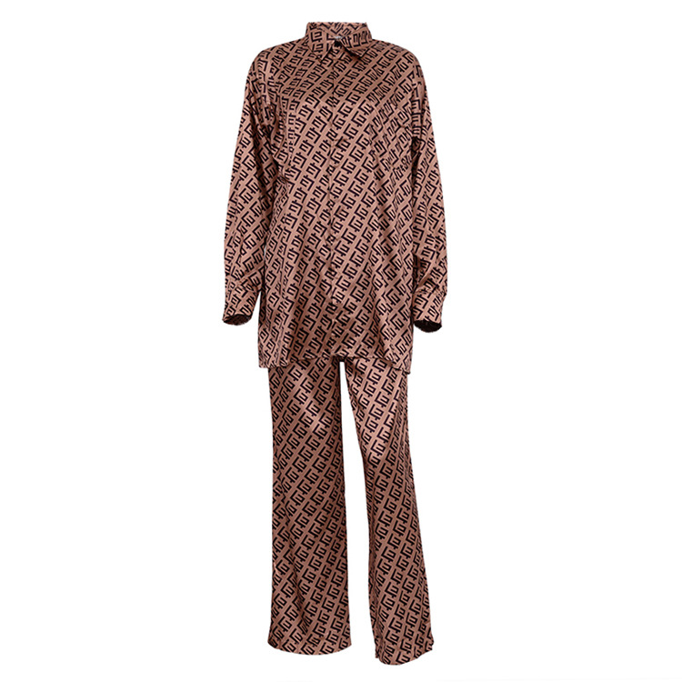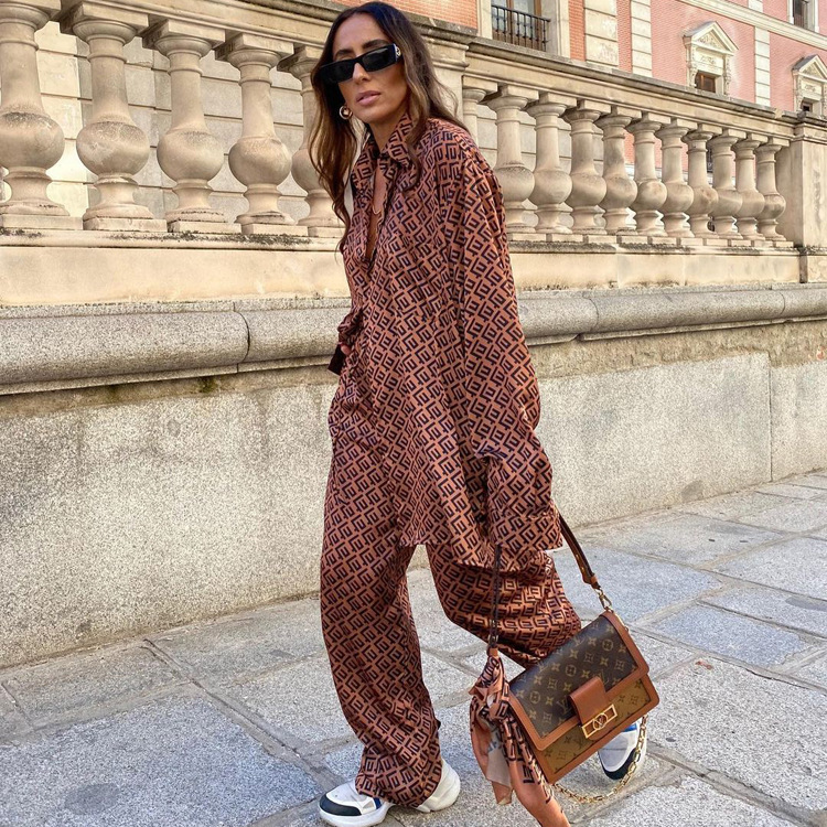 Costume deux pièces décontracté en satin drapé avec col et manches longues imprimé