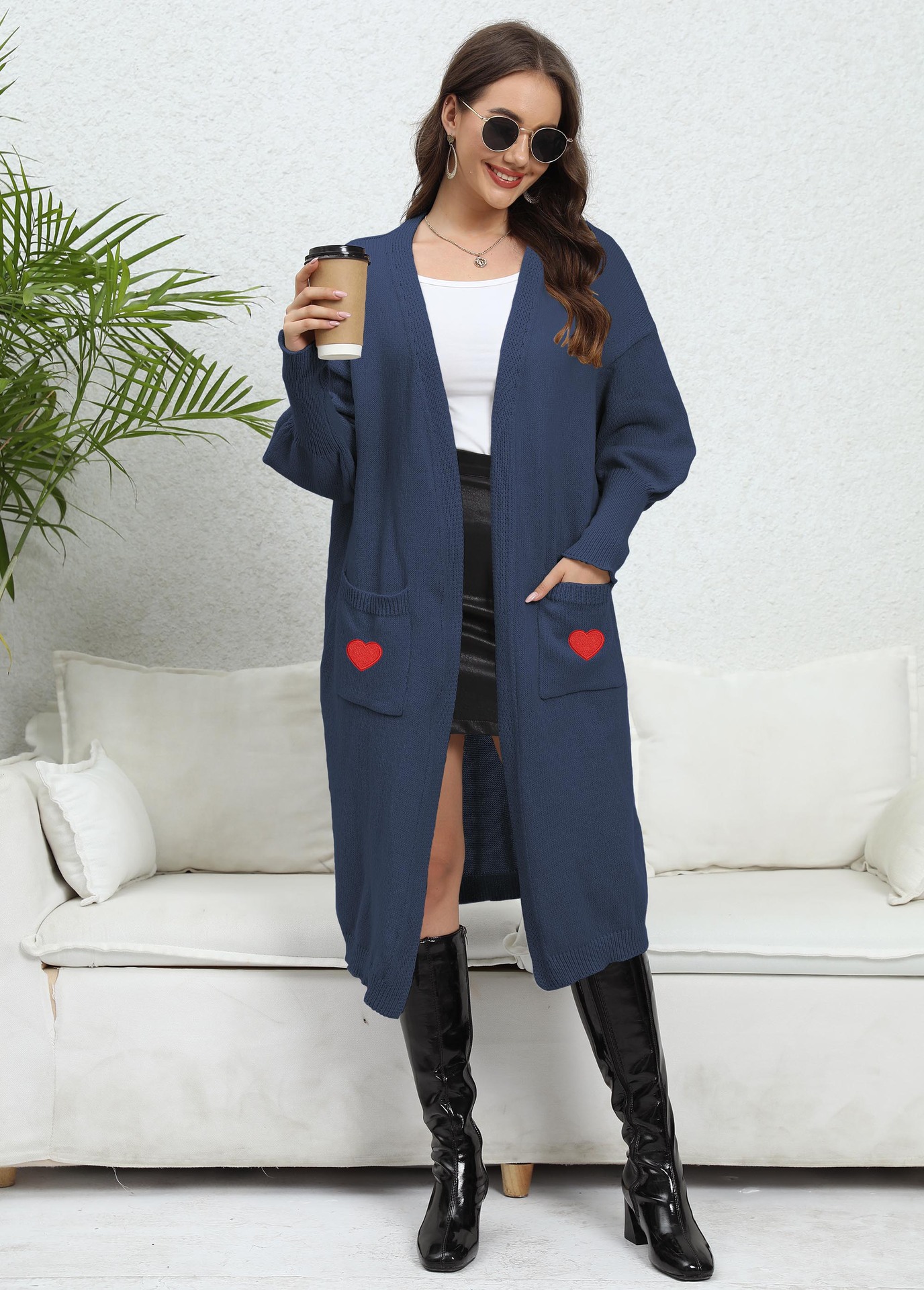 Manteau ample Lazy Love Stickers Pull tissé Pull à double poche à manches lanternes Cardigan