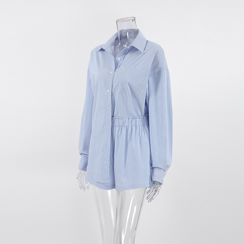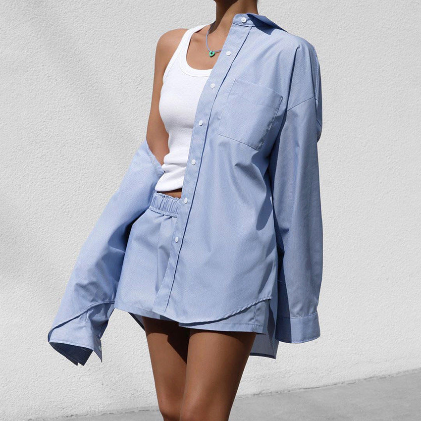 Ensemble deux pièces confortable, chemise ample à manches longues et short