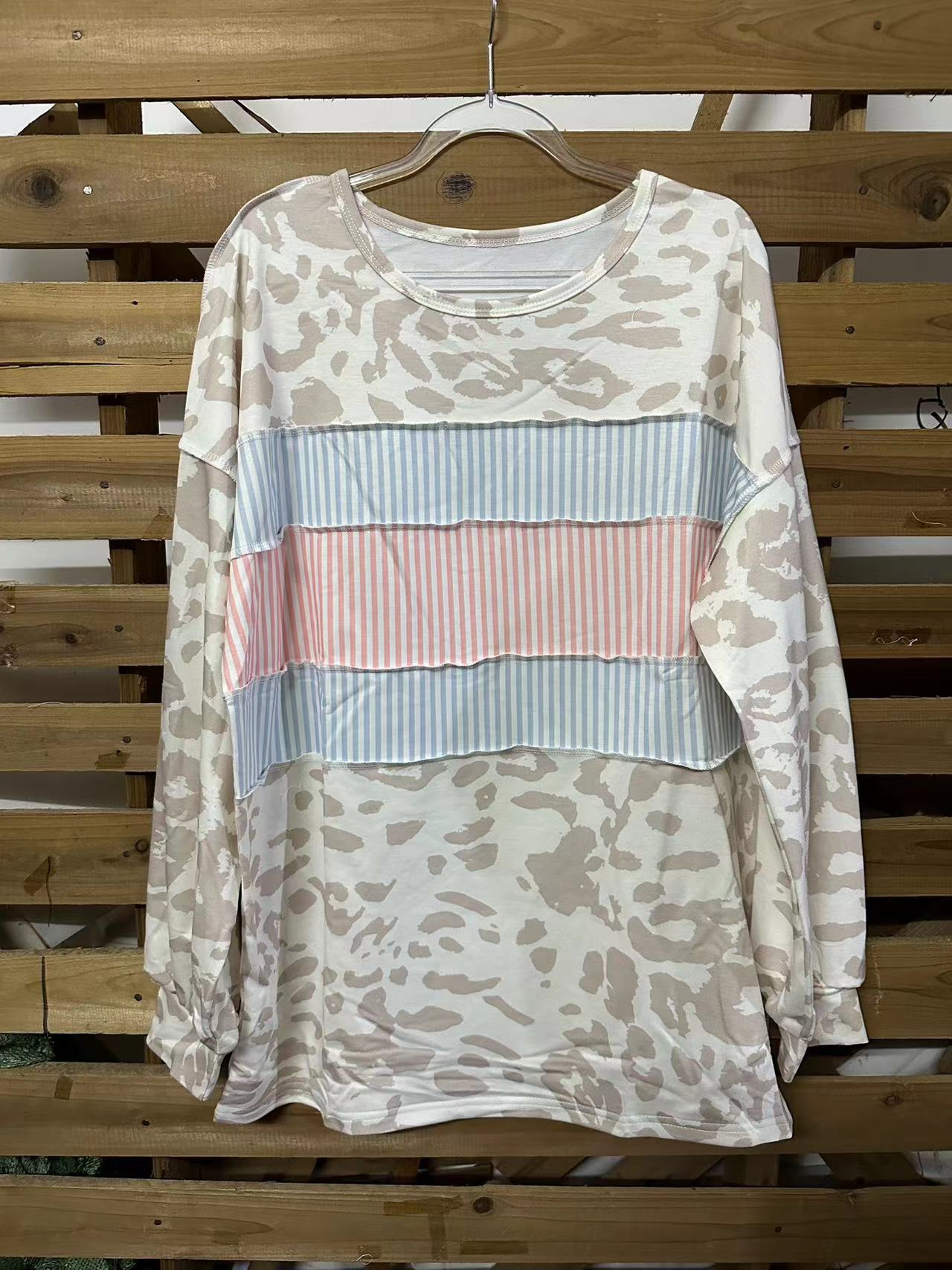 Pull à manches longues et col rond à imprimé léopard et haut de couleur contrastée