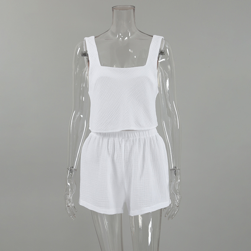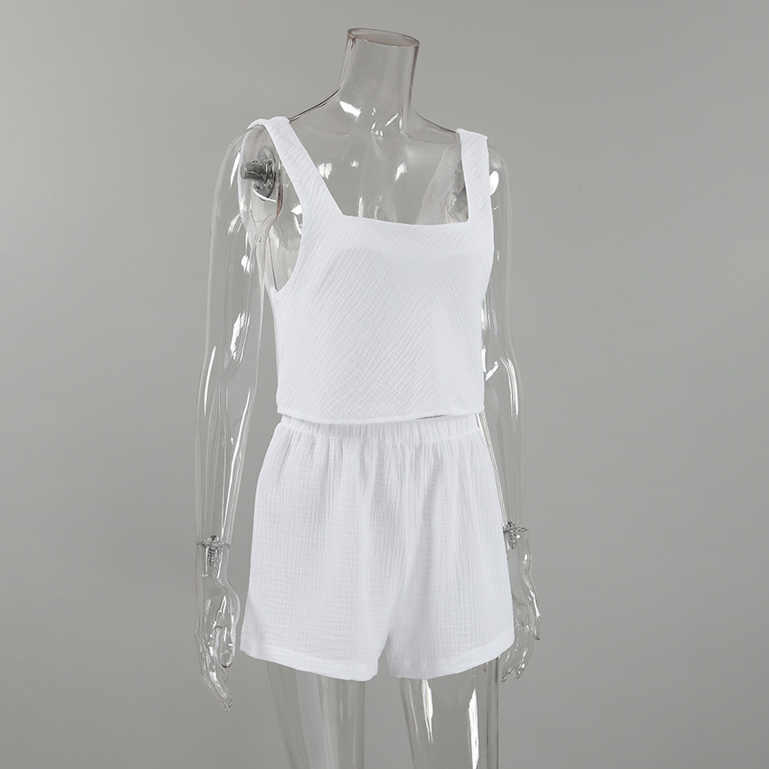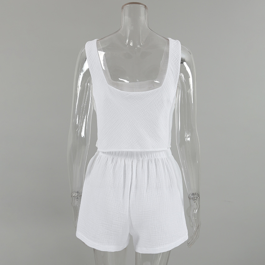 Ensemble pyjama confortable en crêpe de coton avec gilet et short