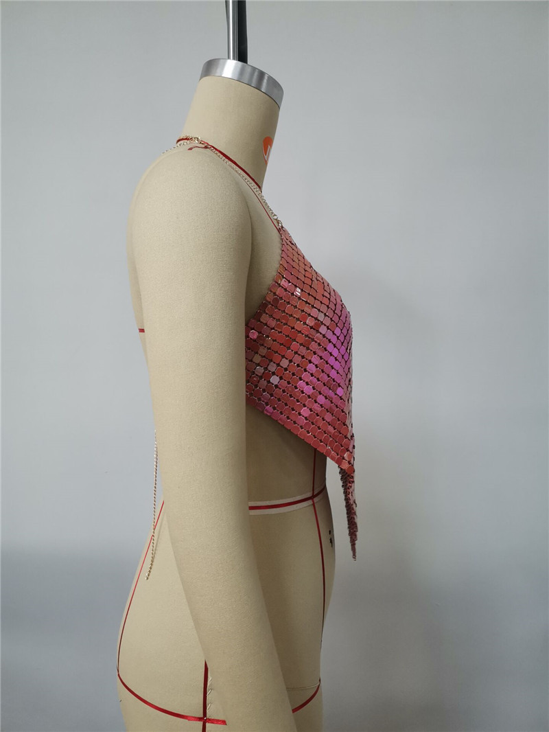 Haut court dos nu en métal à bretelles spaghetti et barre miroir croisée