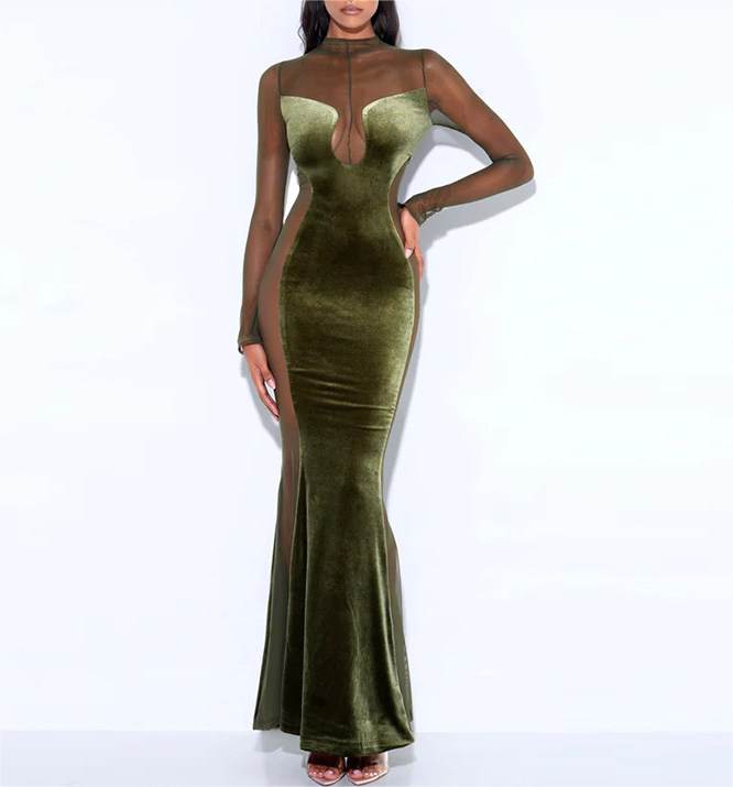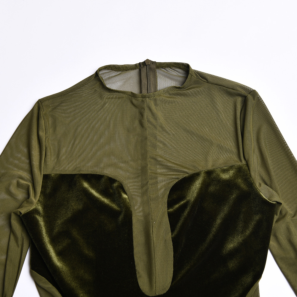 Robe transparente découpée à manches longues et col rond, robe dos nu