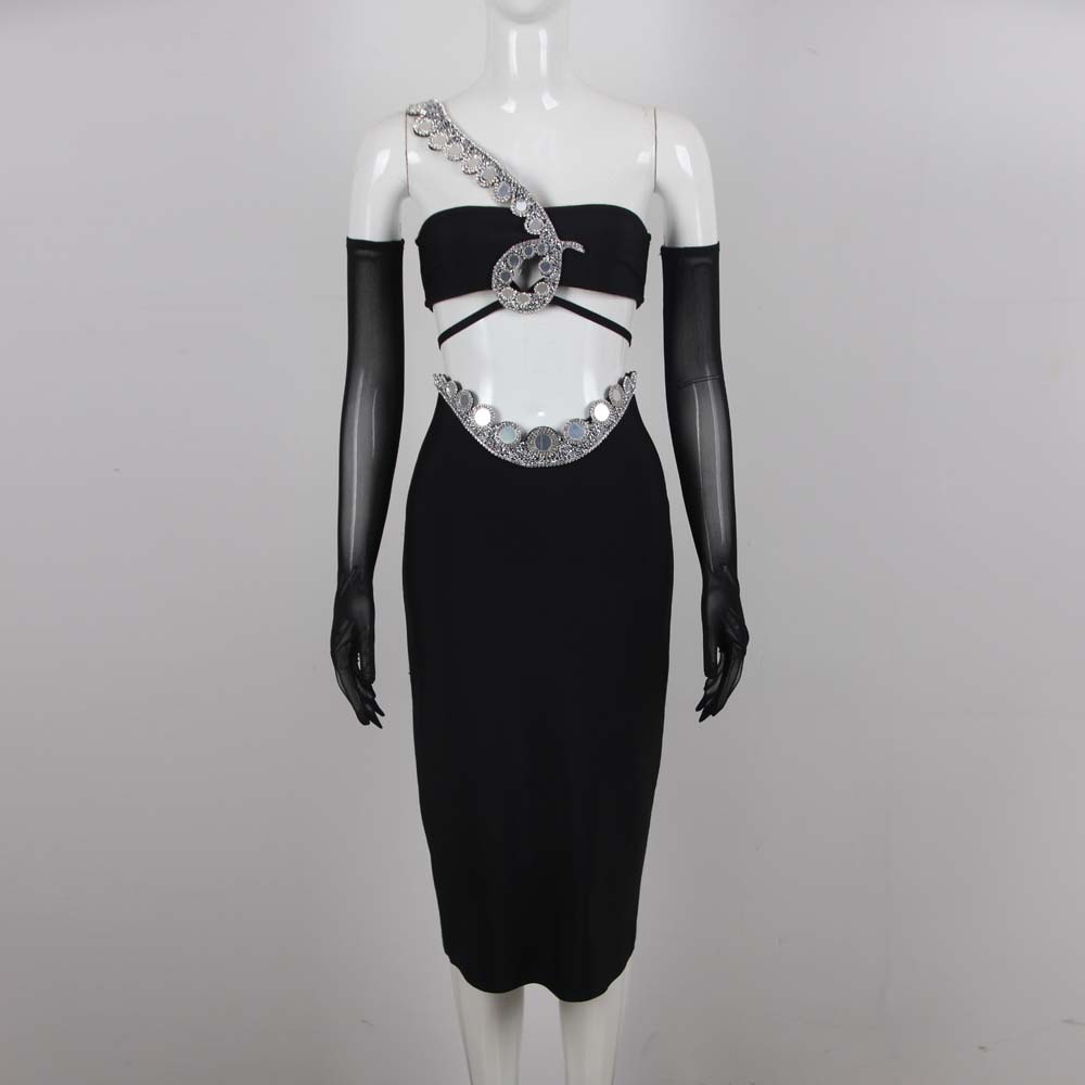 Ensemble deux pièces robe fourreau moulante taille haute à découpes