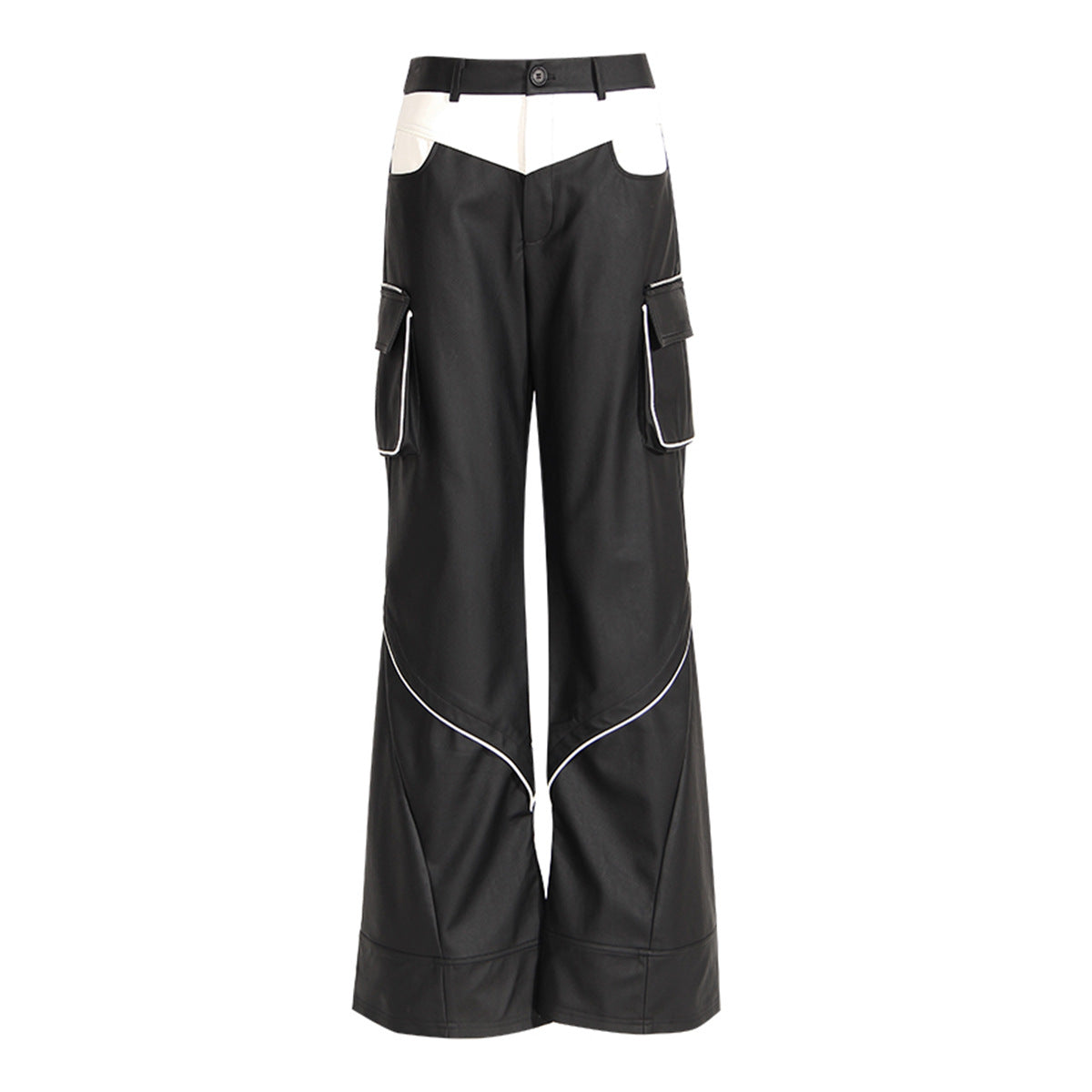 Pantalon de niche déconstruit, patchwork de couleurs contrastées, pantalon fendu tridimensionnel, pantalon décontracté, pantalon en cuir