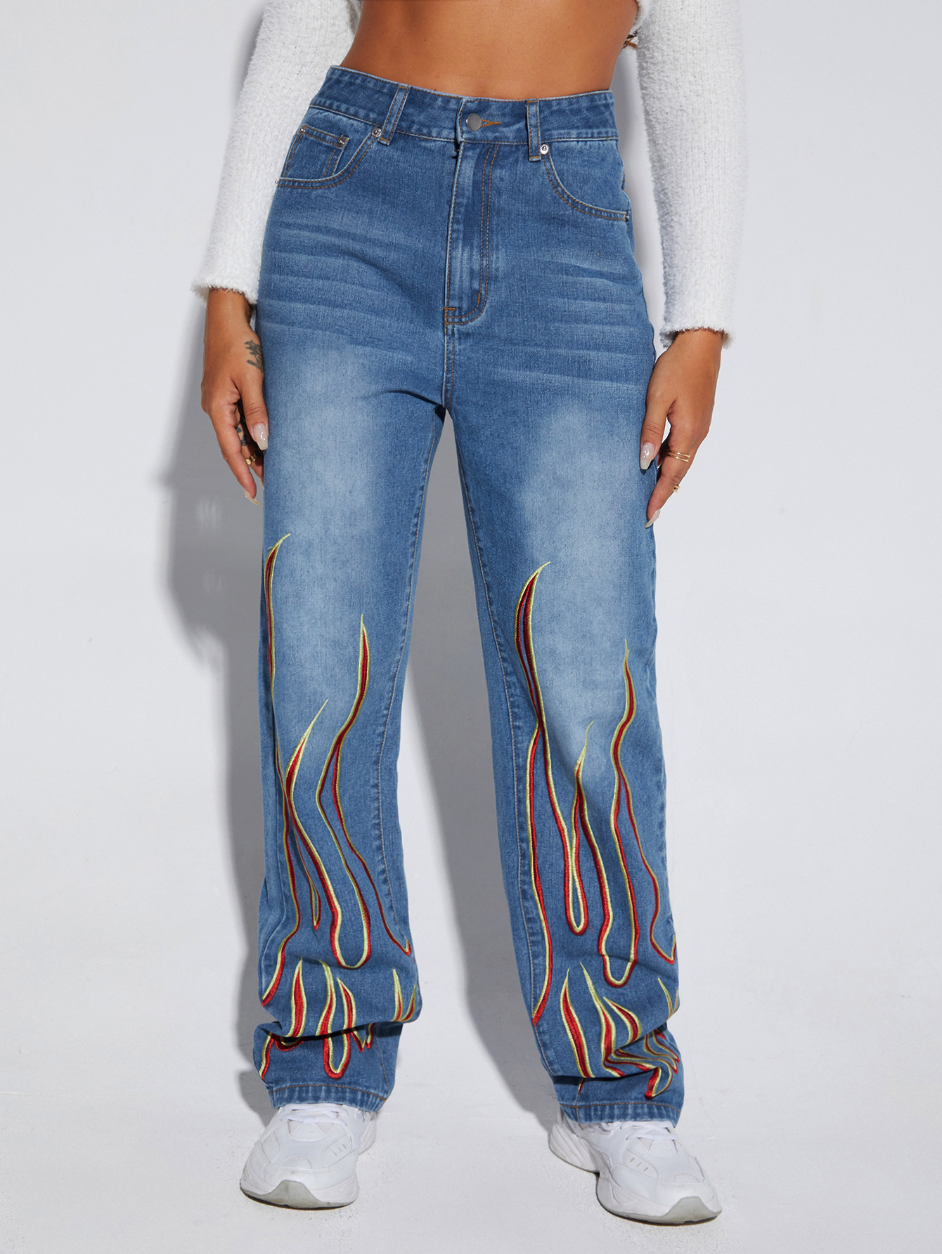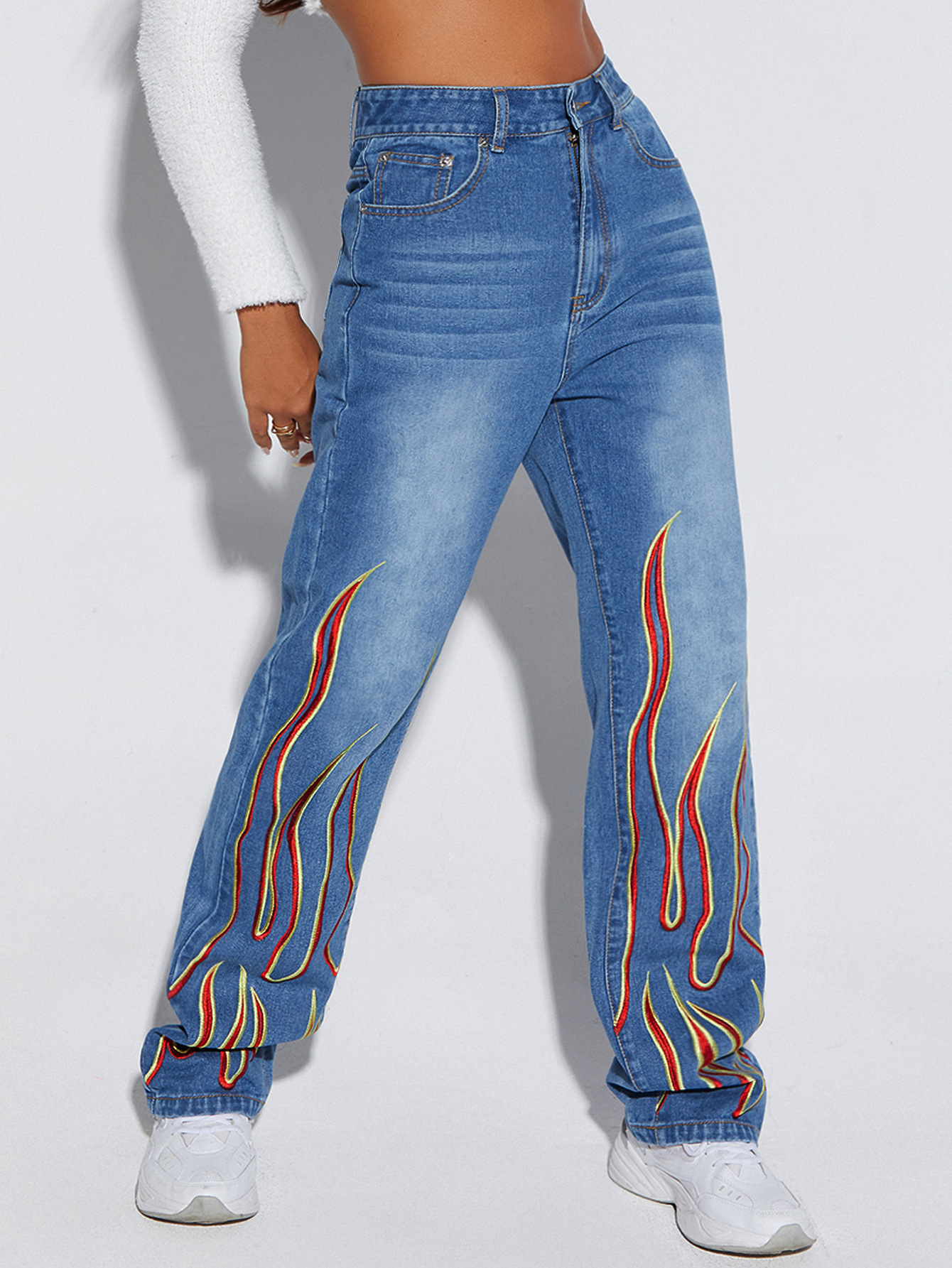 Pantalon en denim amincissant imprimé personnalité Jeans