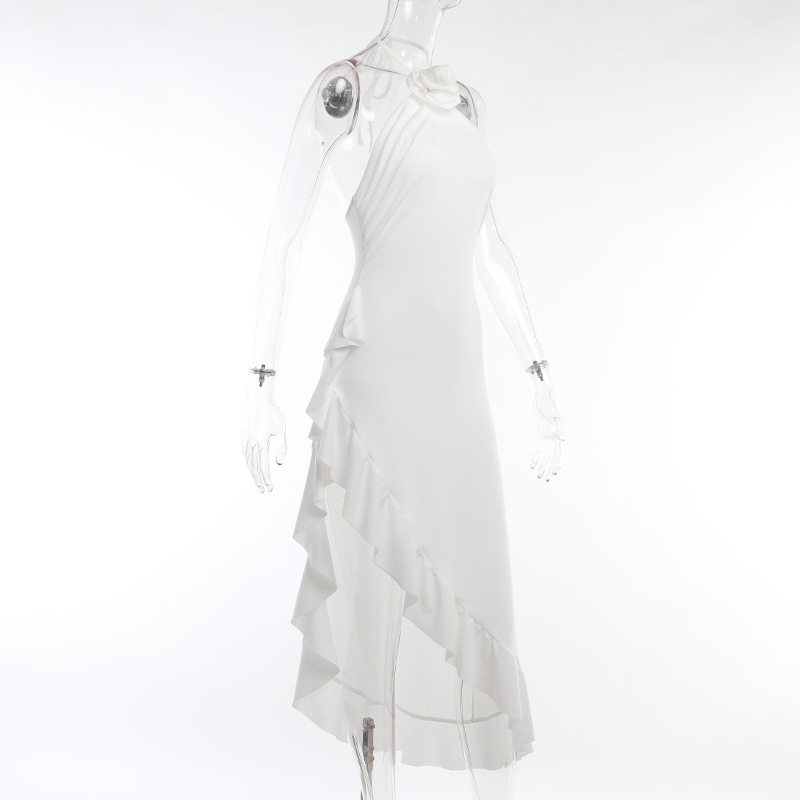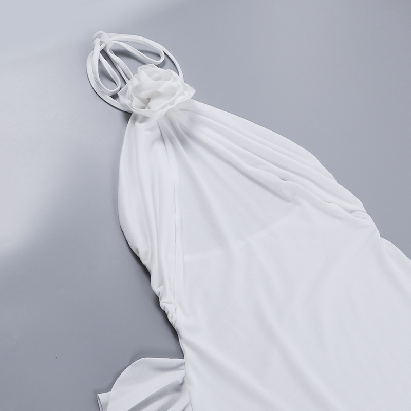 Robe élégante et tendance à imprimé floral tridimensionnel, coupe ajustée et fendue à col licou
