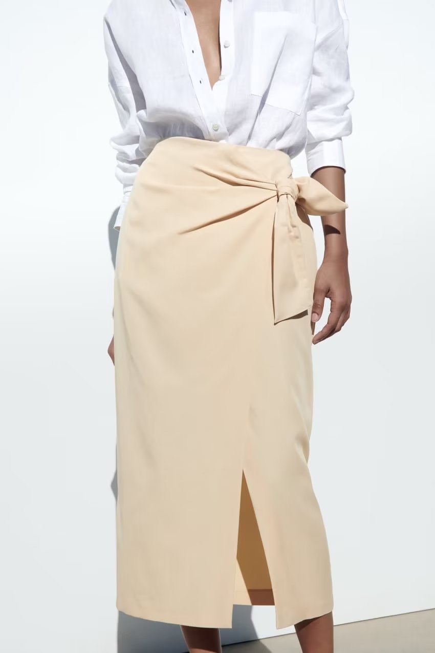 Robe mi-longue décontractée taille haute avec nœud papillon
