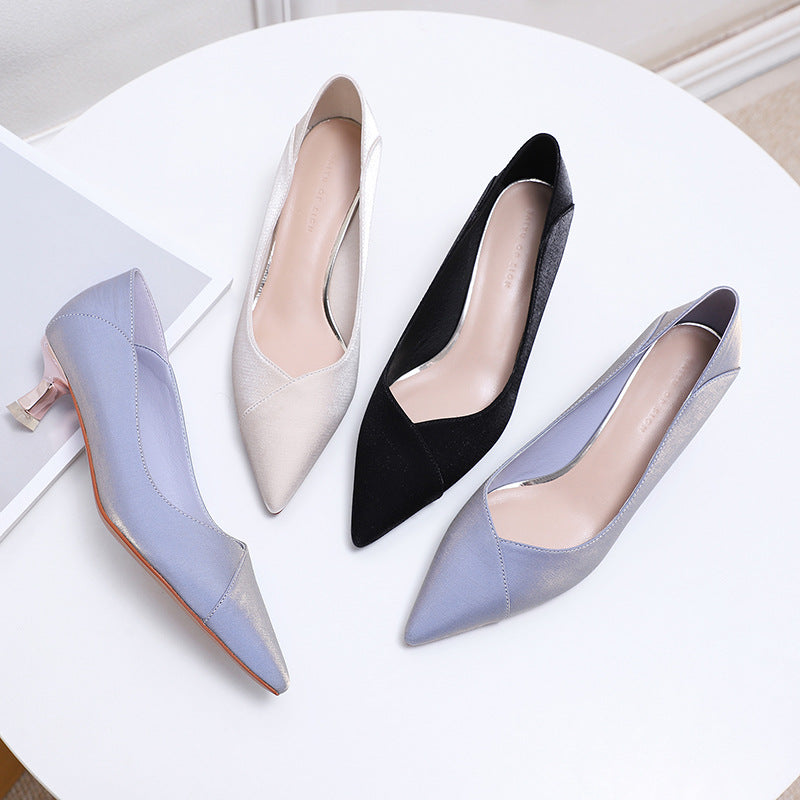Élément mode : bouche peu profonde, coutures en cuir, talon aiguille