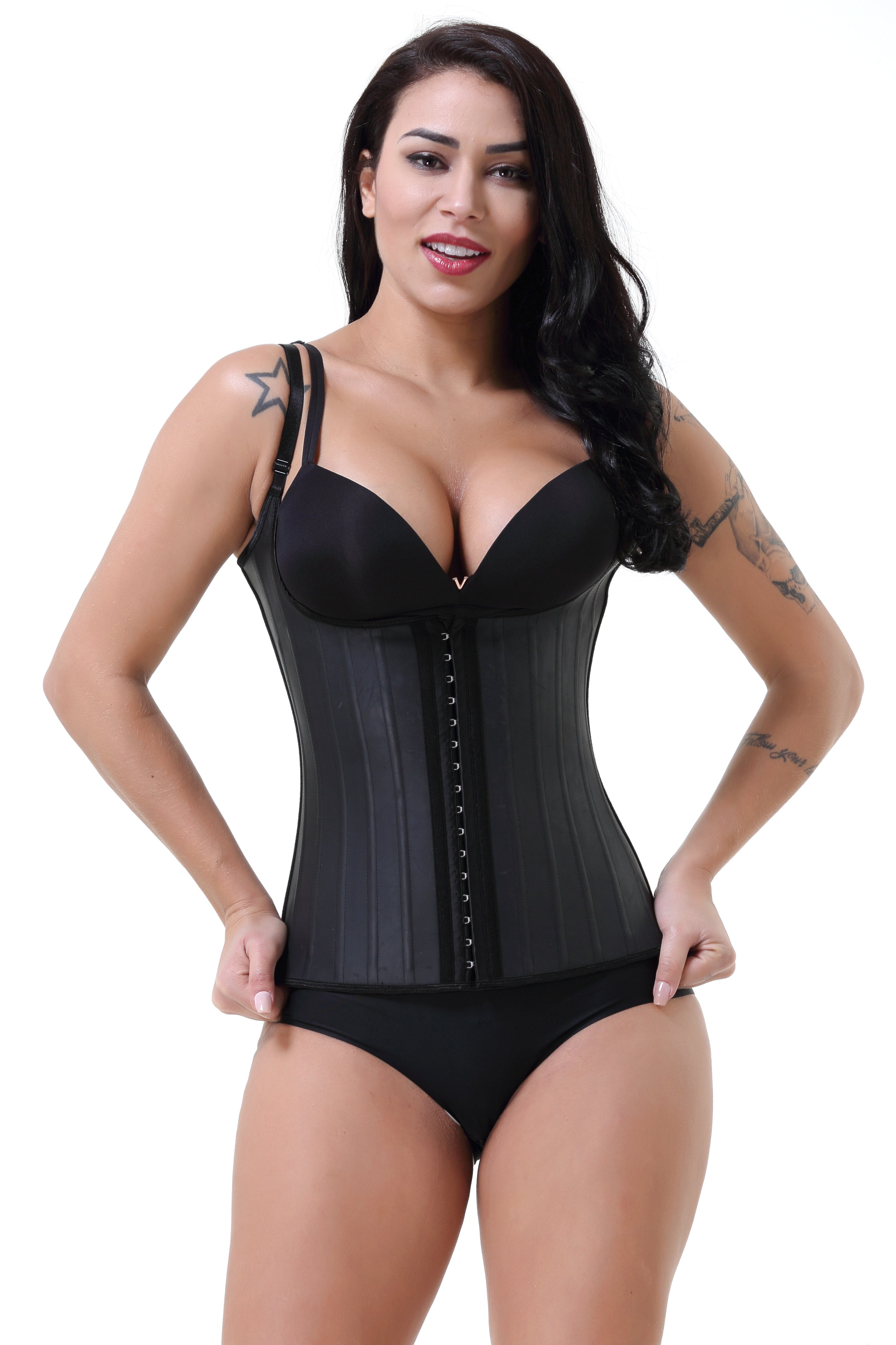 Gilet en latex brillant avec fermeture éclair et bretelles spaghetti, corset en caoutchouc