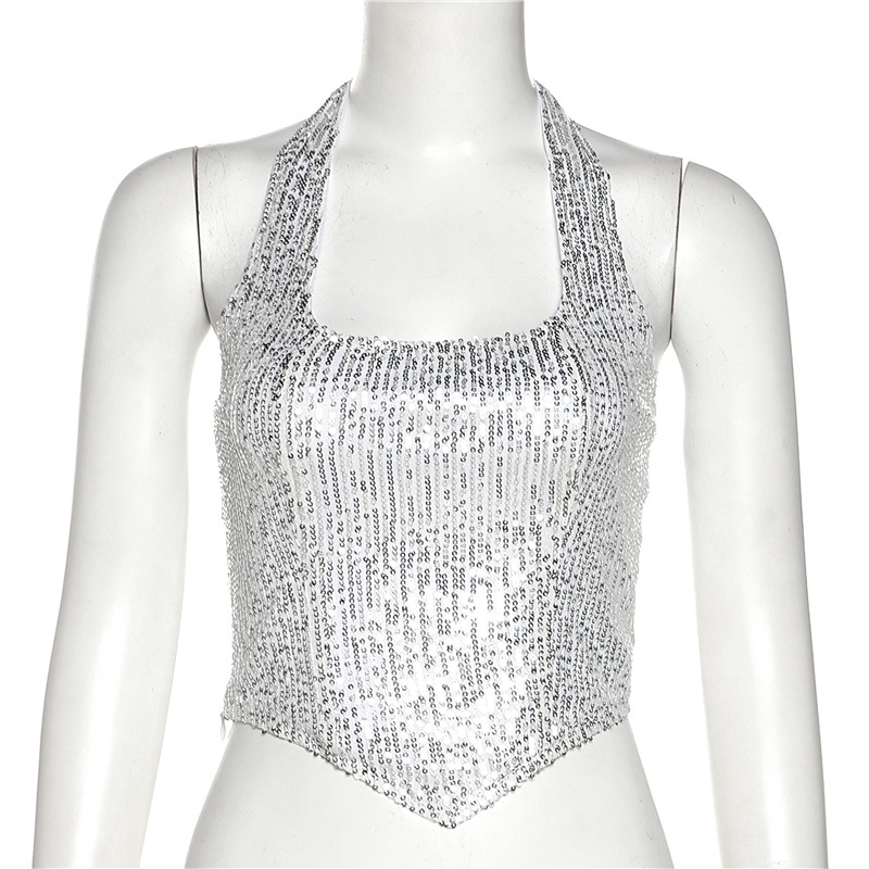 Gilet slim à paillettes dos nu