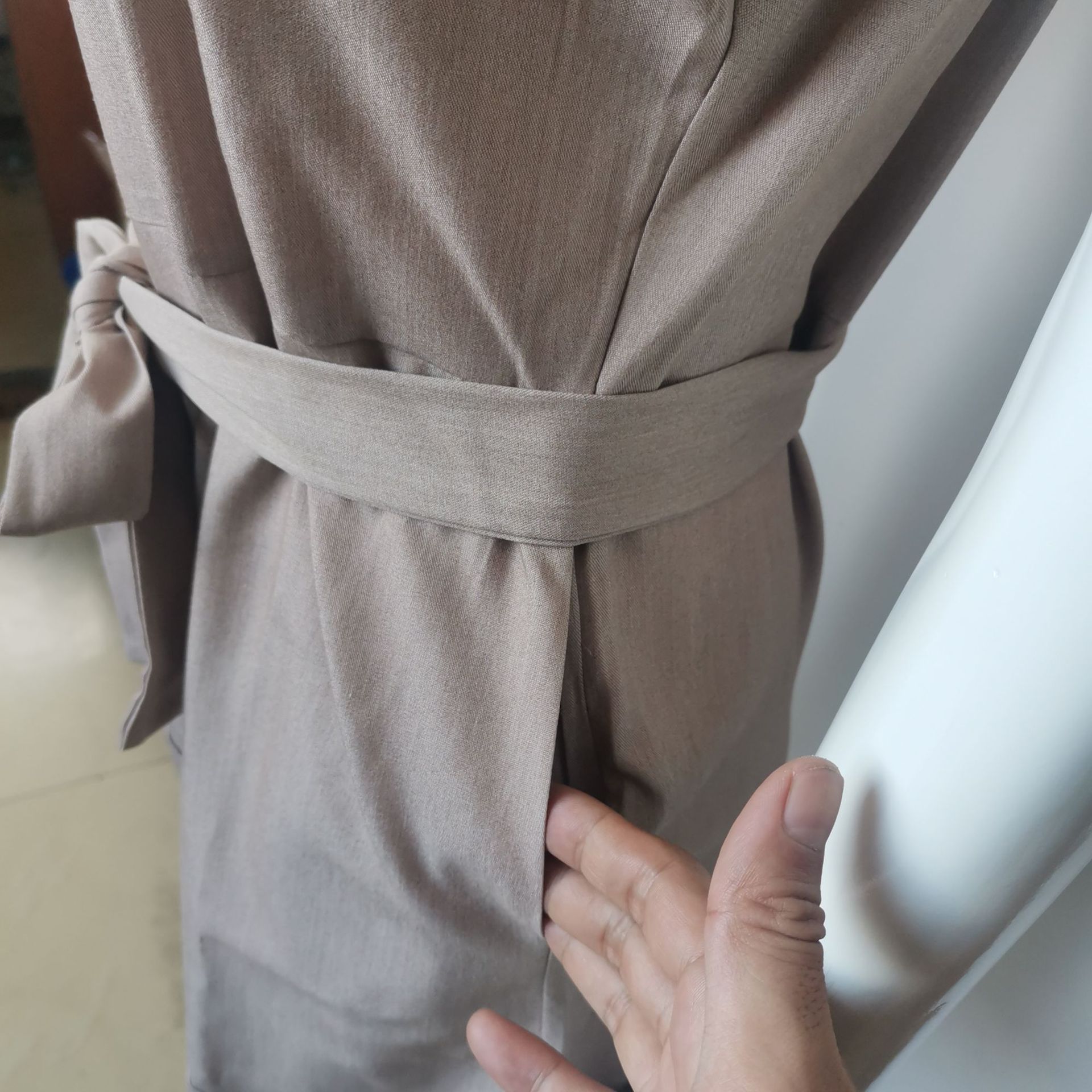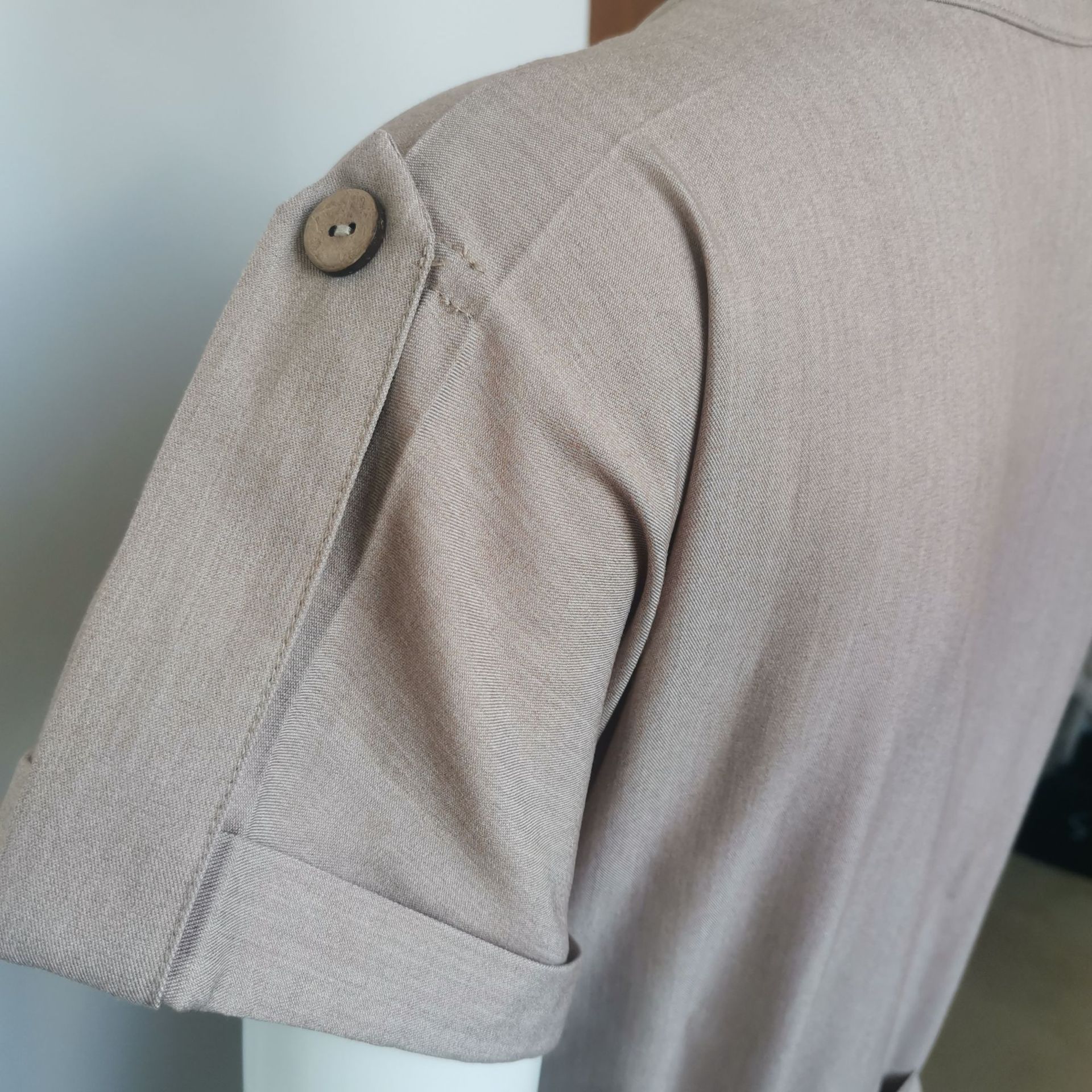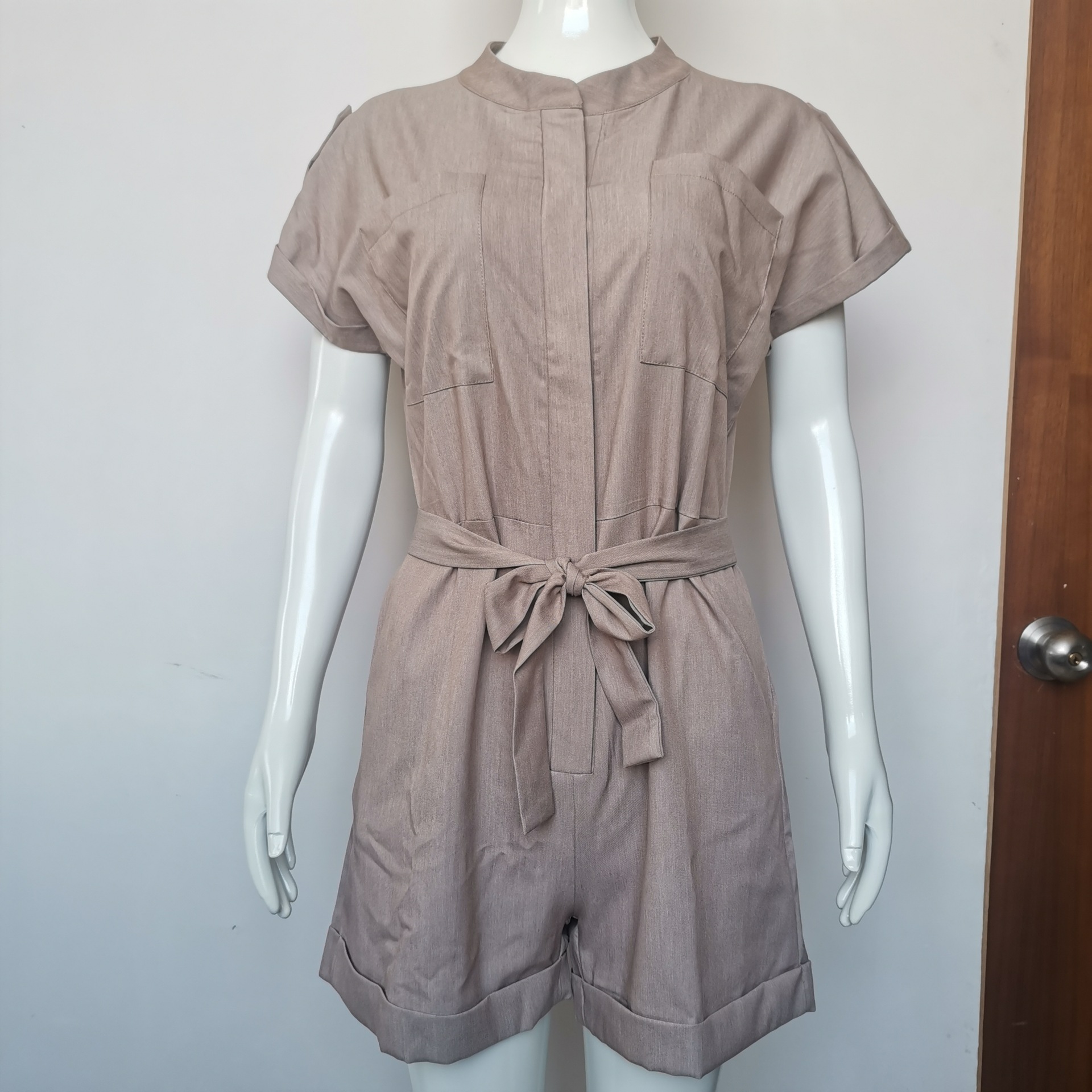 Combinaison une pièce en coton chanvre à simple boutonnage, manches longues, grande poche, couleur unie