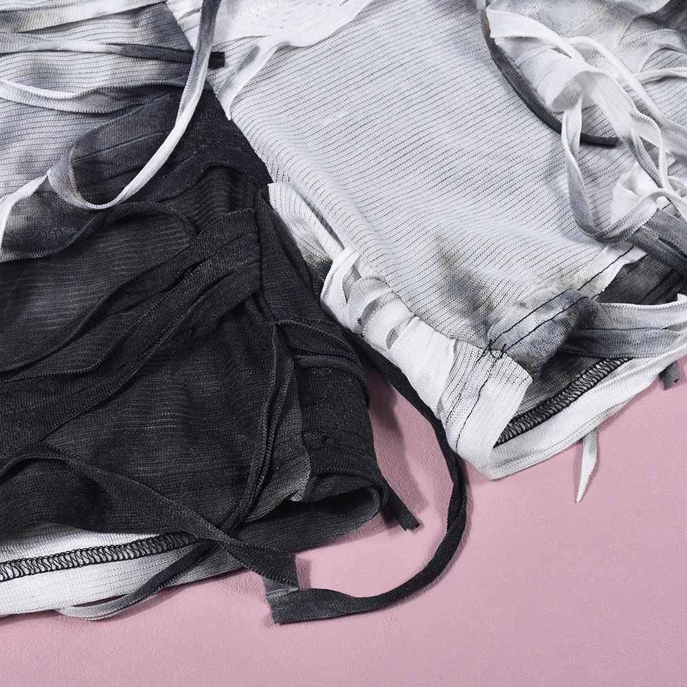 Combinaison courte à capuche sans manches avec col à poils découpés et découpes