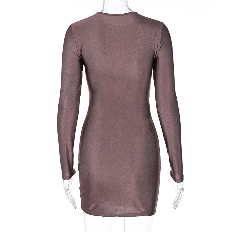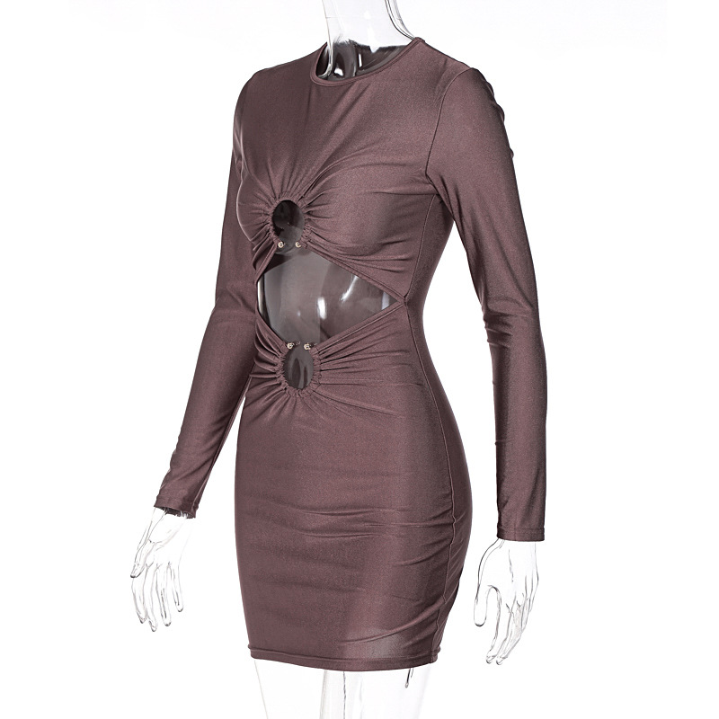 Robe moulante à manches longues et col rond ajouré