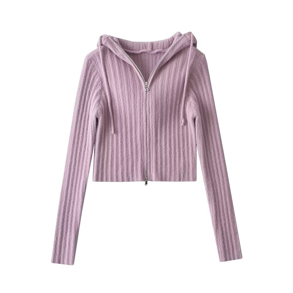 Cardigan en tricot à capuche, coupe ajustée, fermeture éclair, manches longues, manteau pull