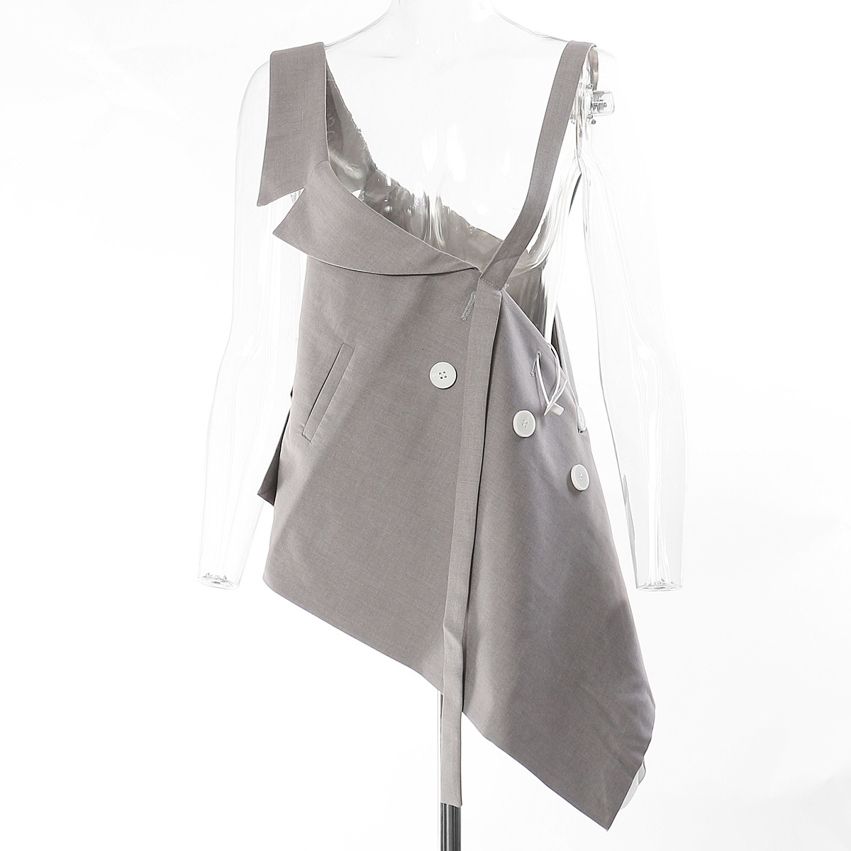 Manteau asymétrique irrégulier avec personnalité, coupe courte, haut à bretelles, gilet