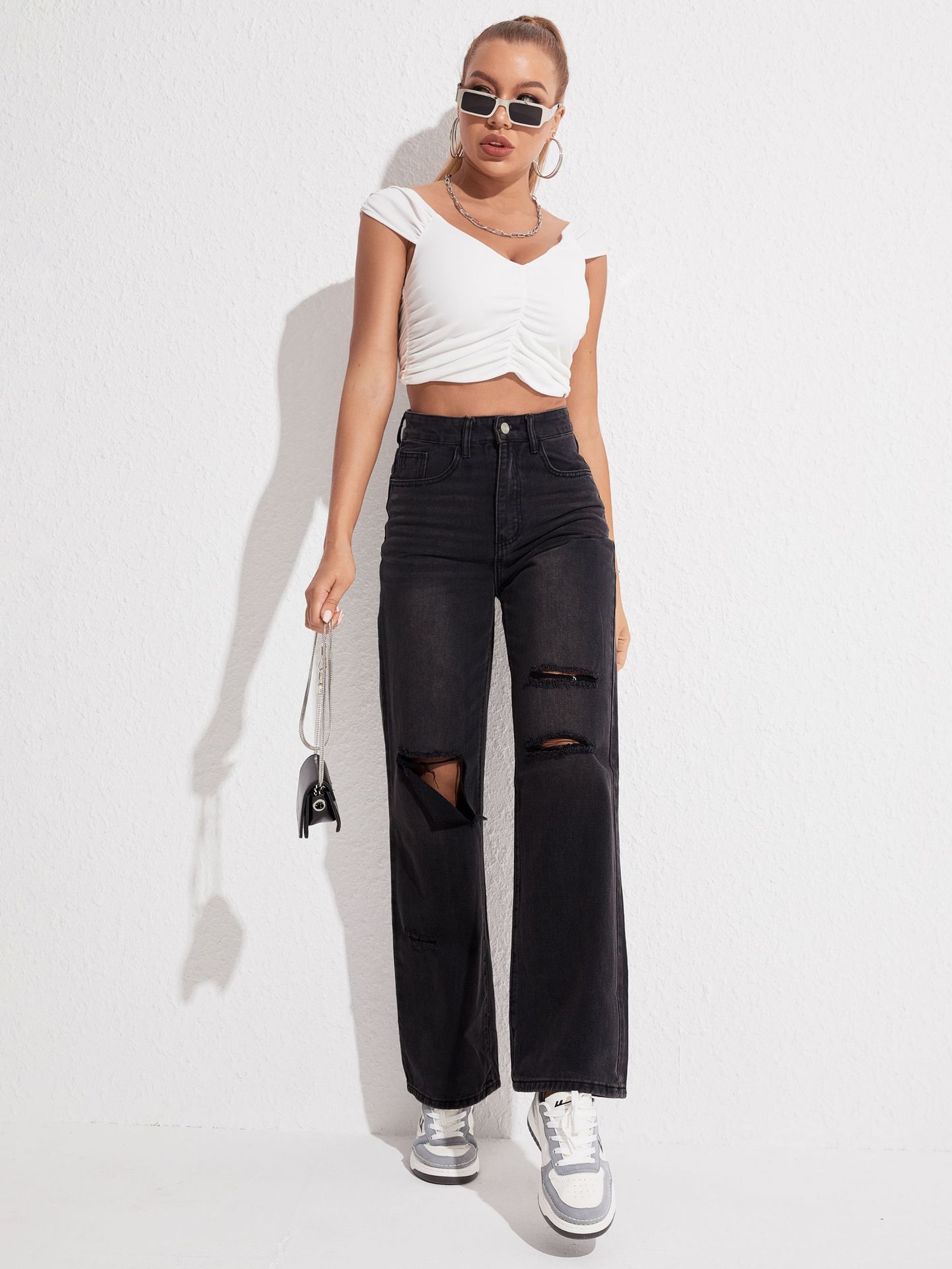 Jean noir déchiré droit décontracté pour homme