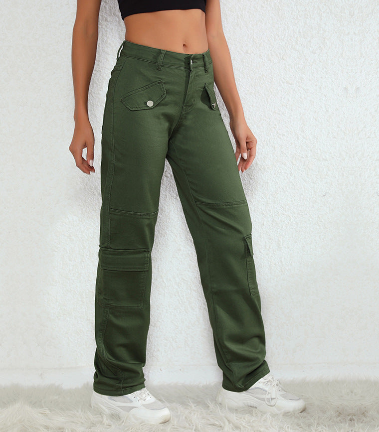 Jeans Pantalons à jambe droite Grandes poches amples Jeans cargo