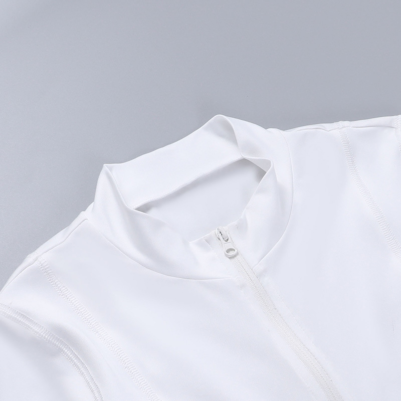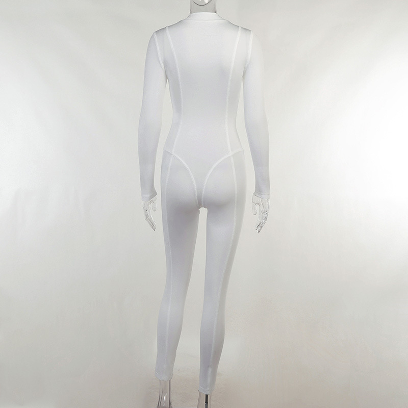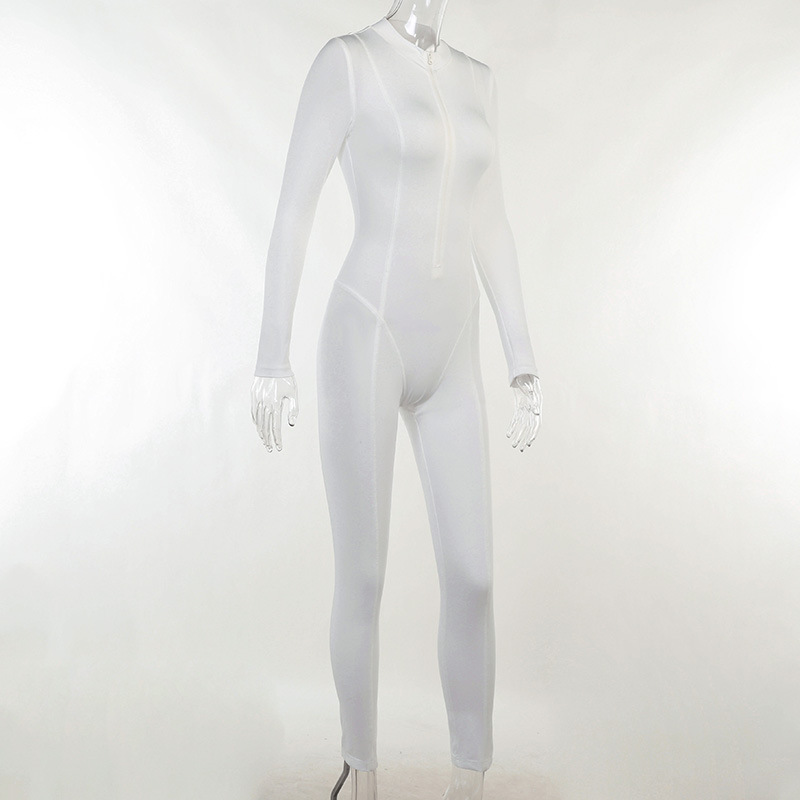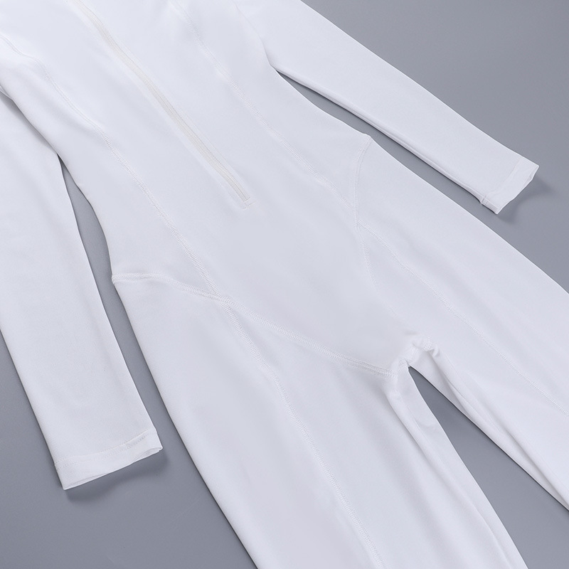 Combinaison tricotée à col rond et manches longues avec fermeture éclair et coutures pour le sport, coupe ajustée et décontractée