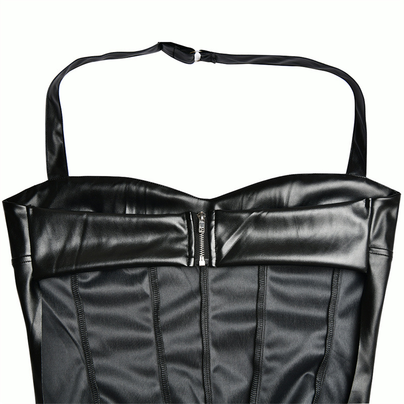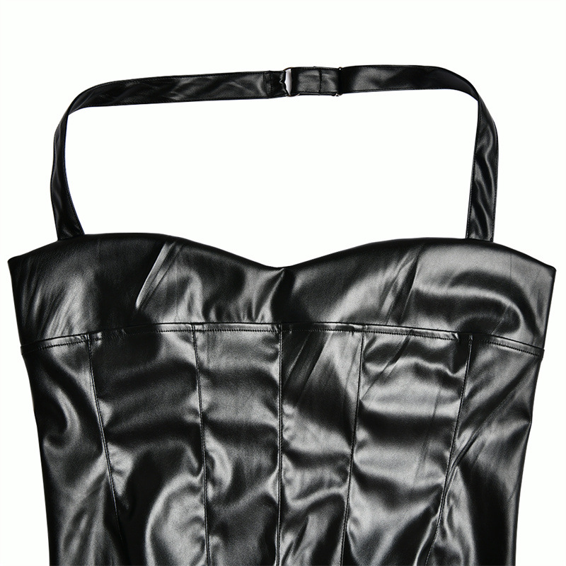 Gilet en cuir dos nu, petit haut cache-cœur fin et tentant
