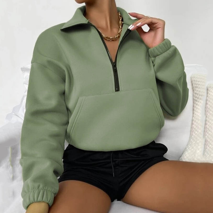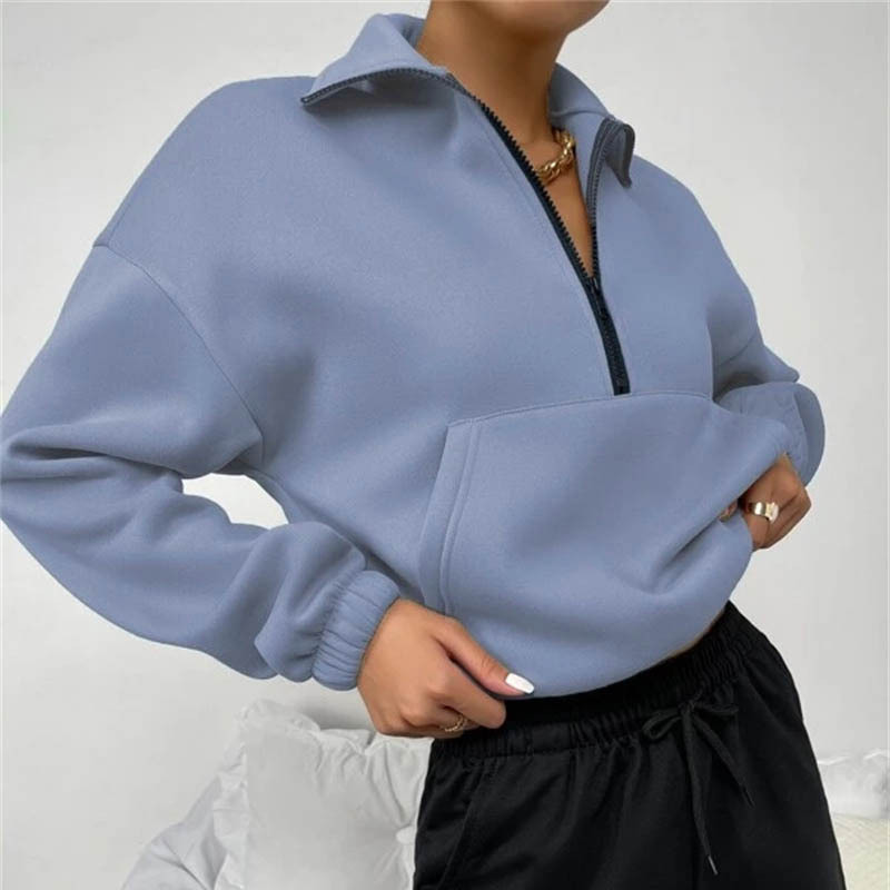 Sweat-shirt ample à manches longues et col zippé