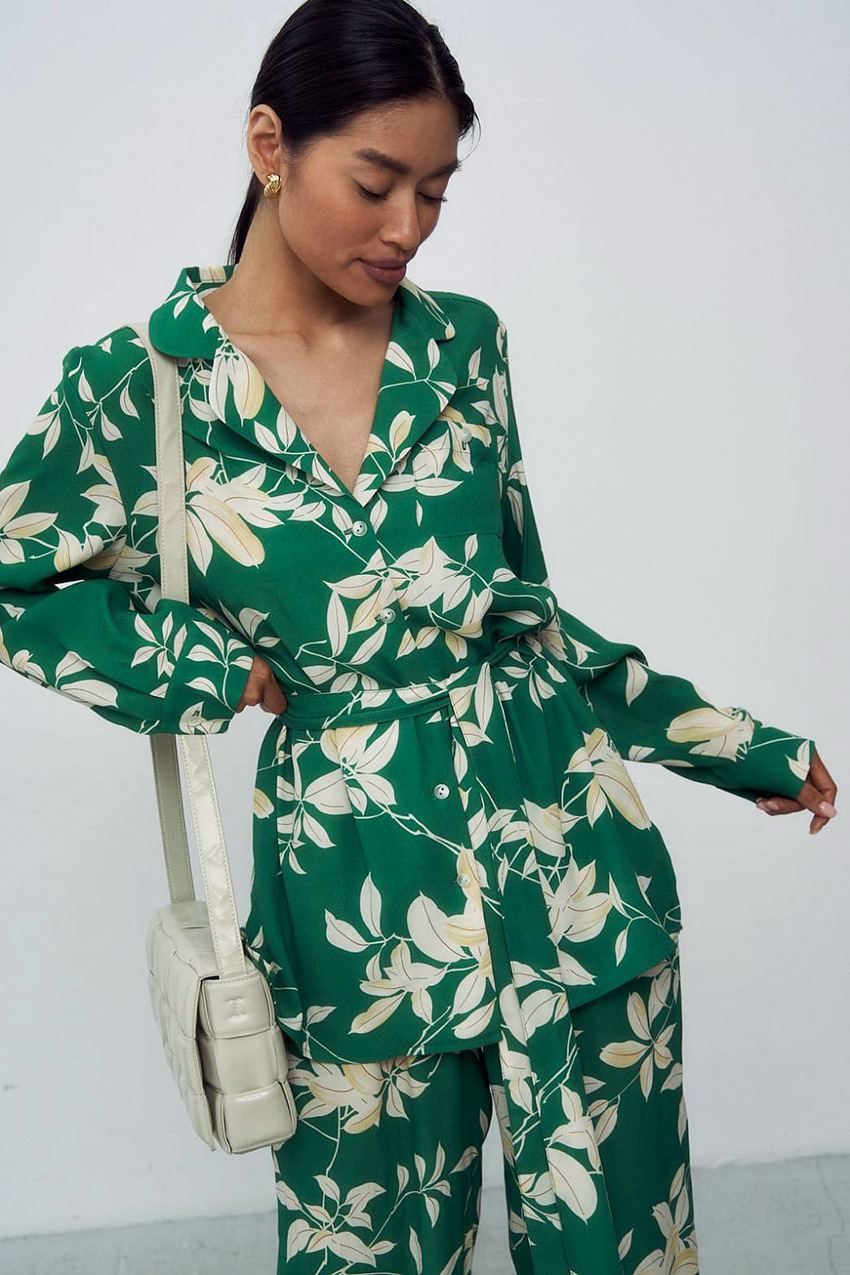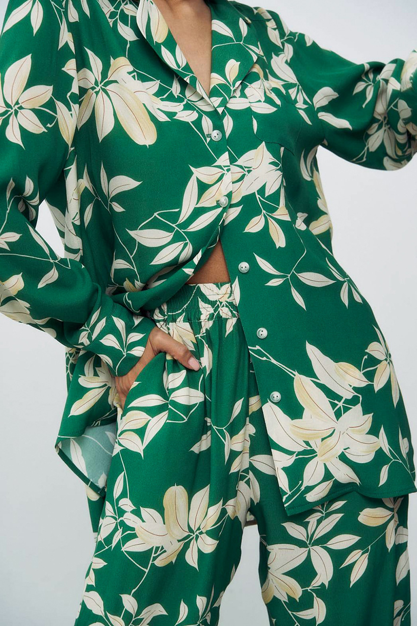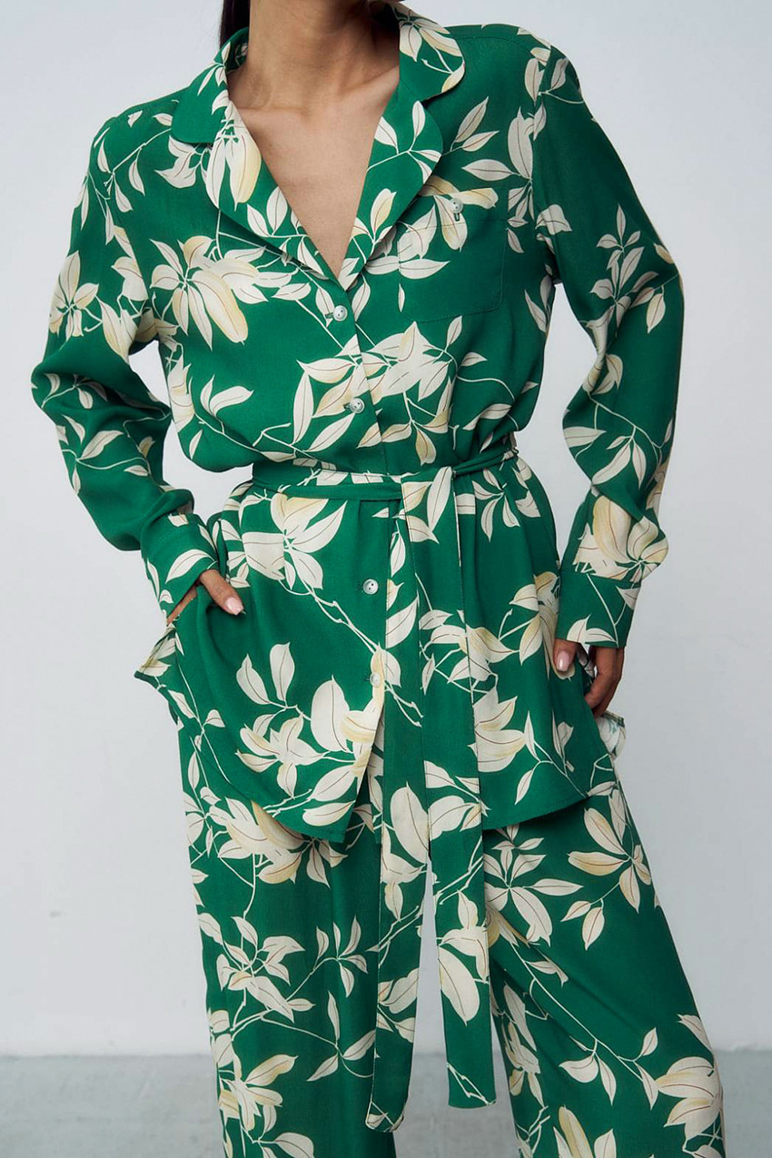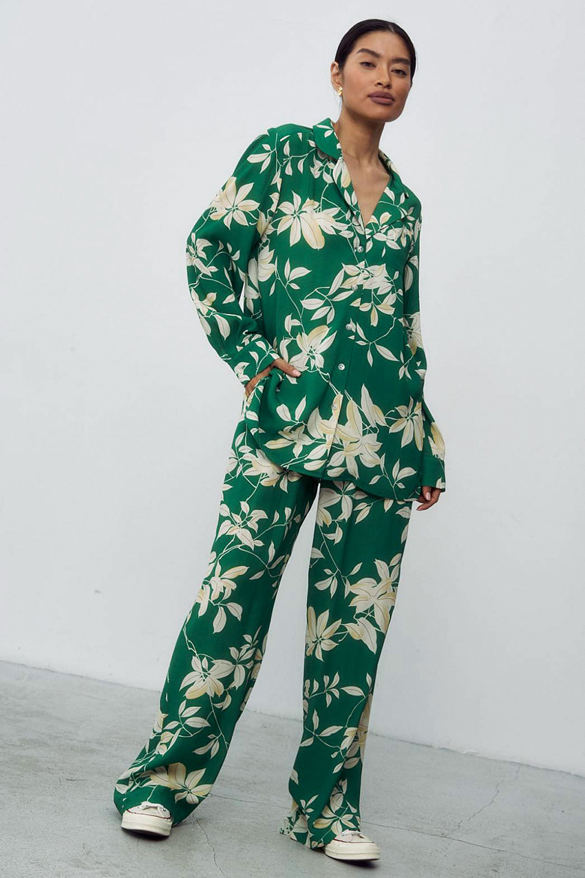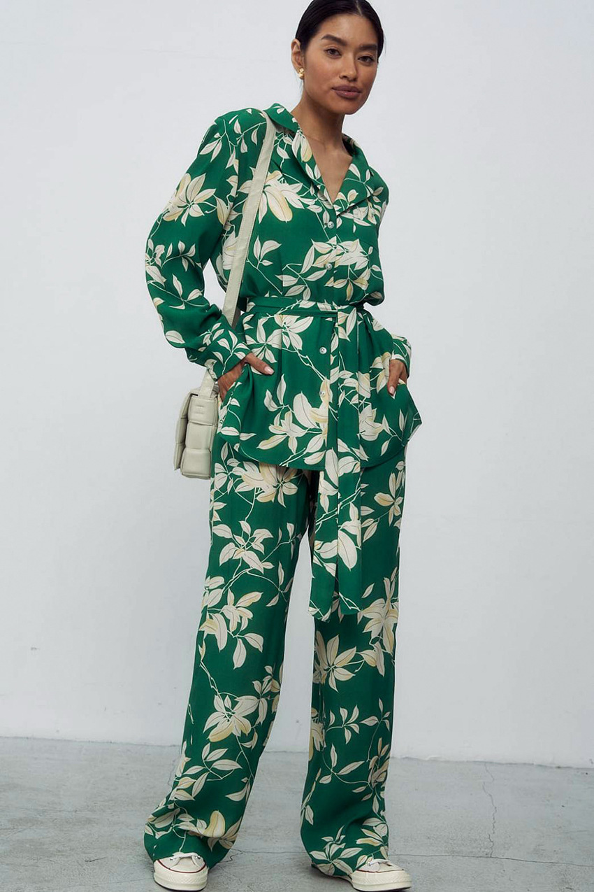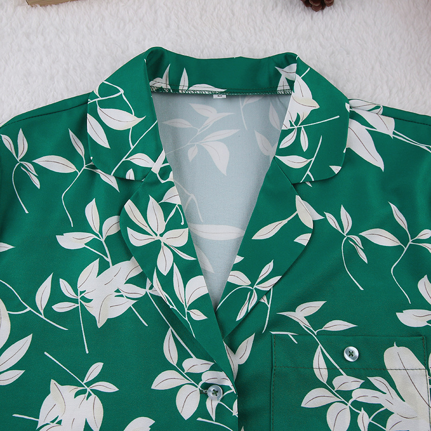 Pyjama imprimé chemise de nuit, pantalon de pyjama, ensemble deux pièces, couleur contrastée, élégant, pour la maison, peut être porté à l'extérieur