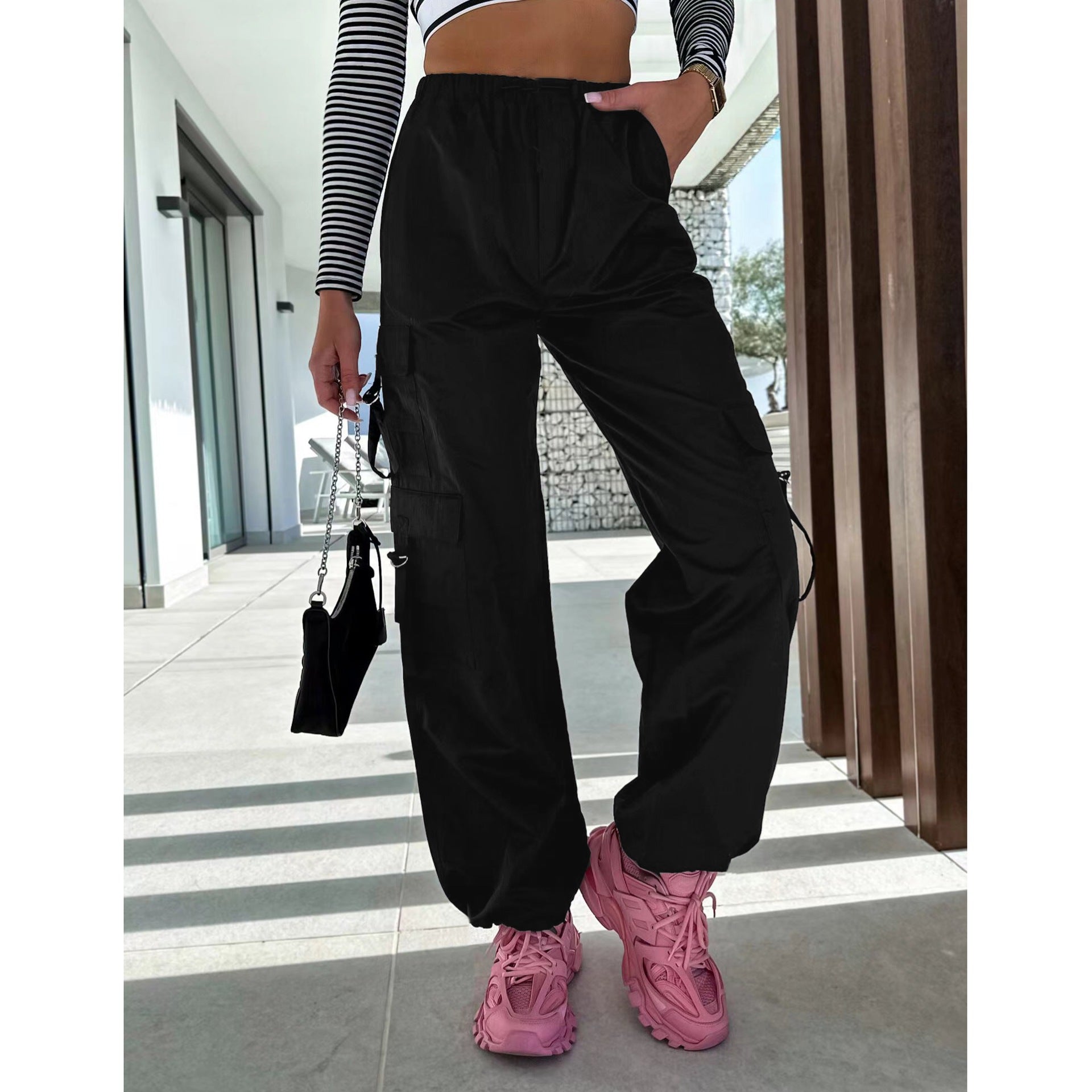 Pantalons de rue, salopettes, pantalons à lacets multi-poches, boucle en métal, jambe droite ample, pantalon à bandes à la cheville