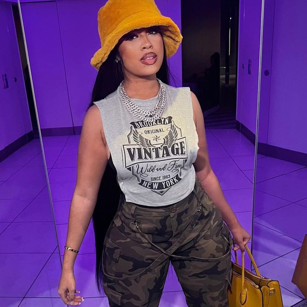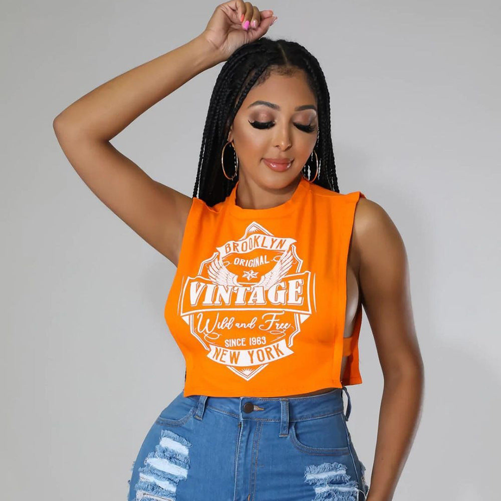 Gilet sans manches à imprimé motif, haut ajouré et découpé aux épaules