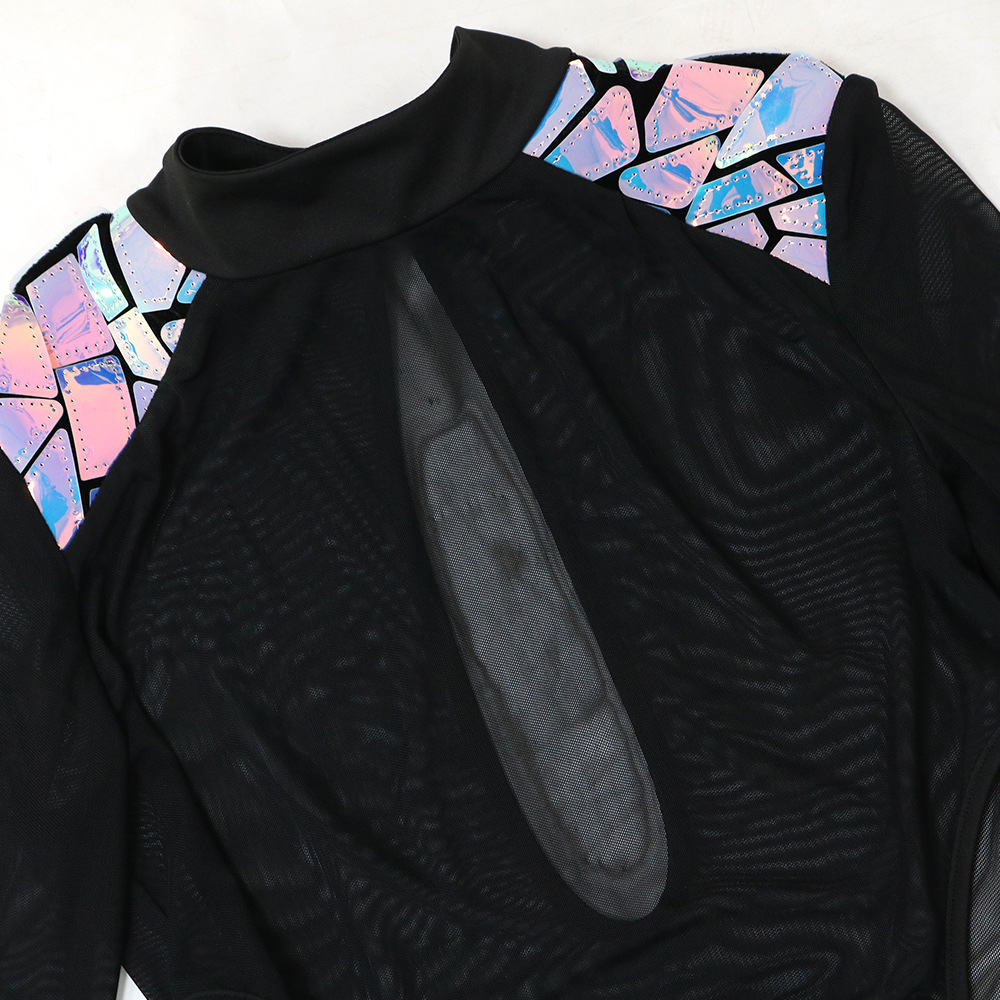 Robe courte transparente à paillettes et manches longues