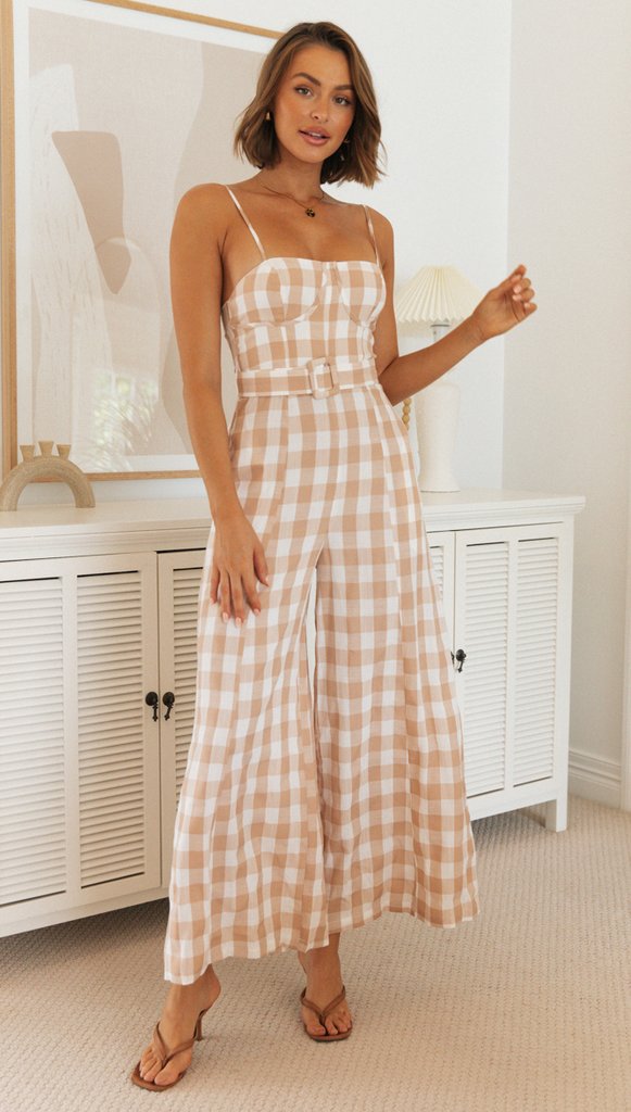 Combinaison à bretelles à carreaux