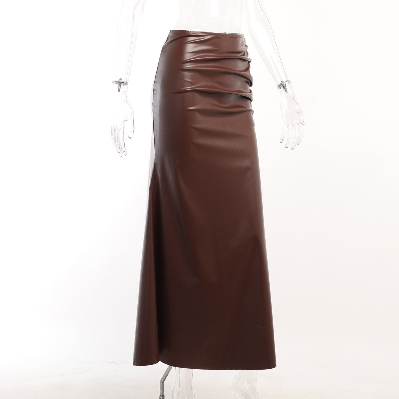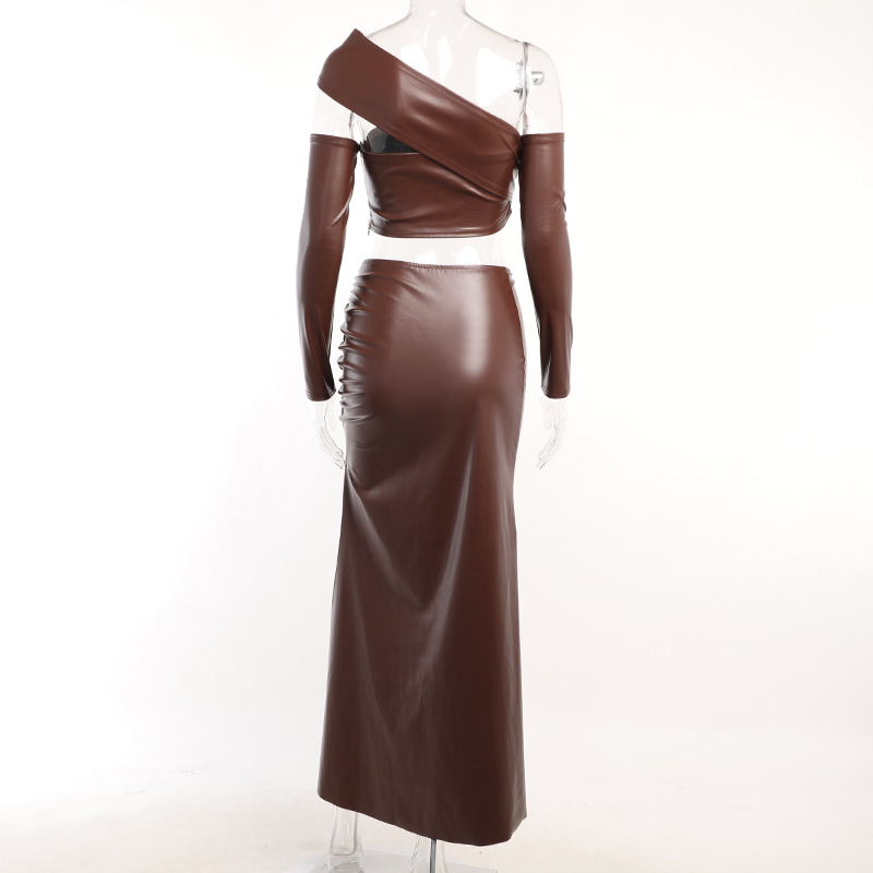 Ensemble haut court plissé en similicuir et jupe moulante fendue sur les hanches