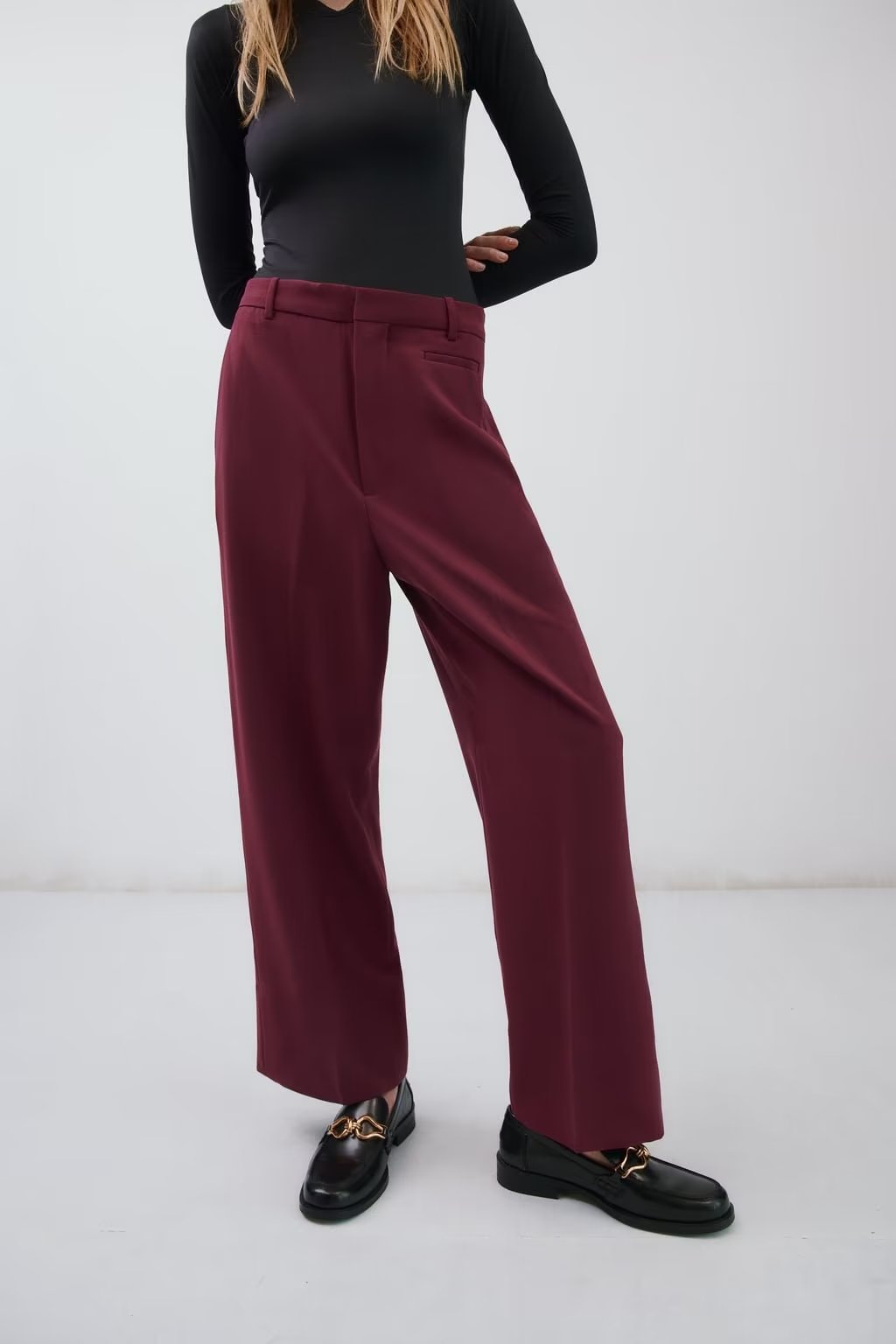Pantalon large taille haute plissé