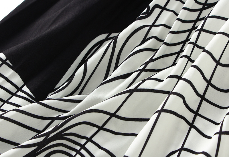 Jupe plissée mi-longue noire et blanche contrastée, irrégulière, asymétrique, rayée, amincissante, style rétro