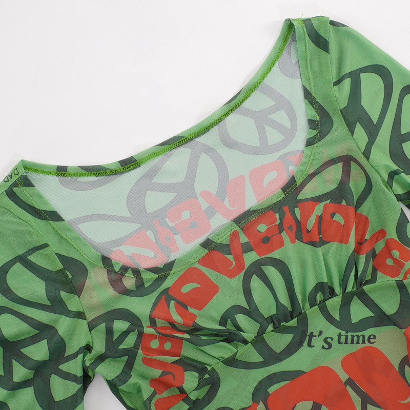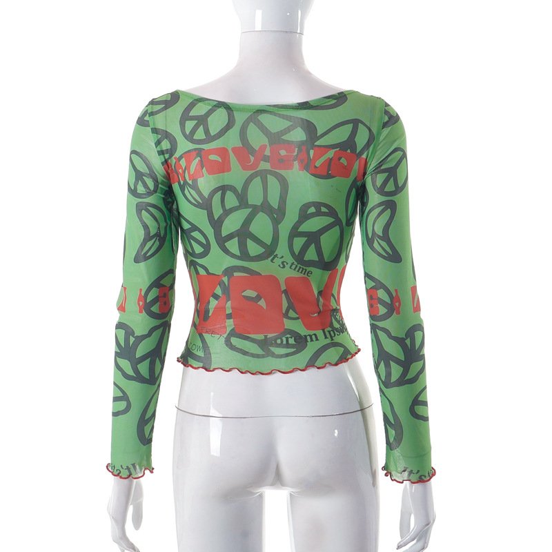 T-shirt slim à manches longues et col en U avec impression de positionnement