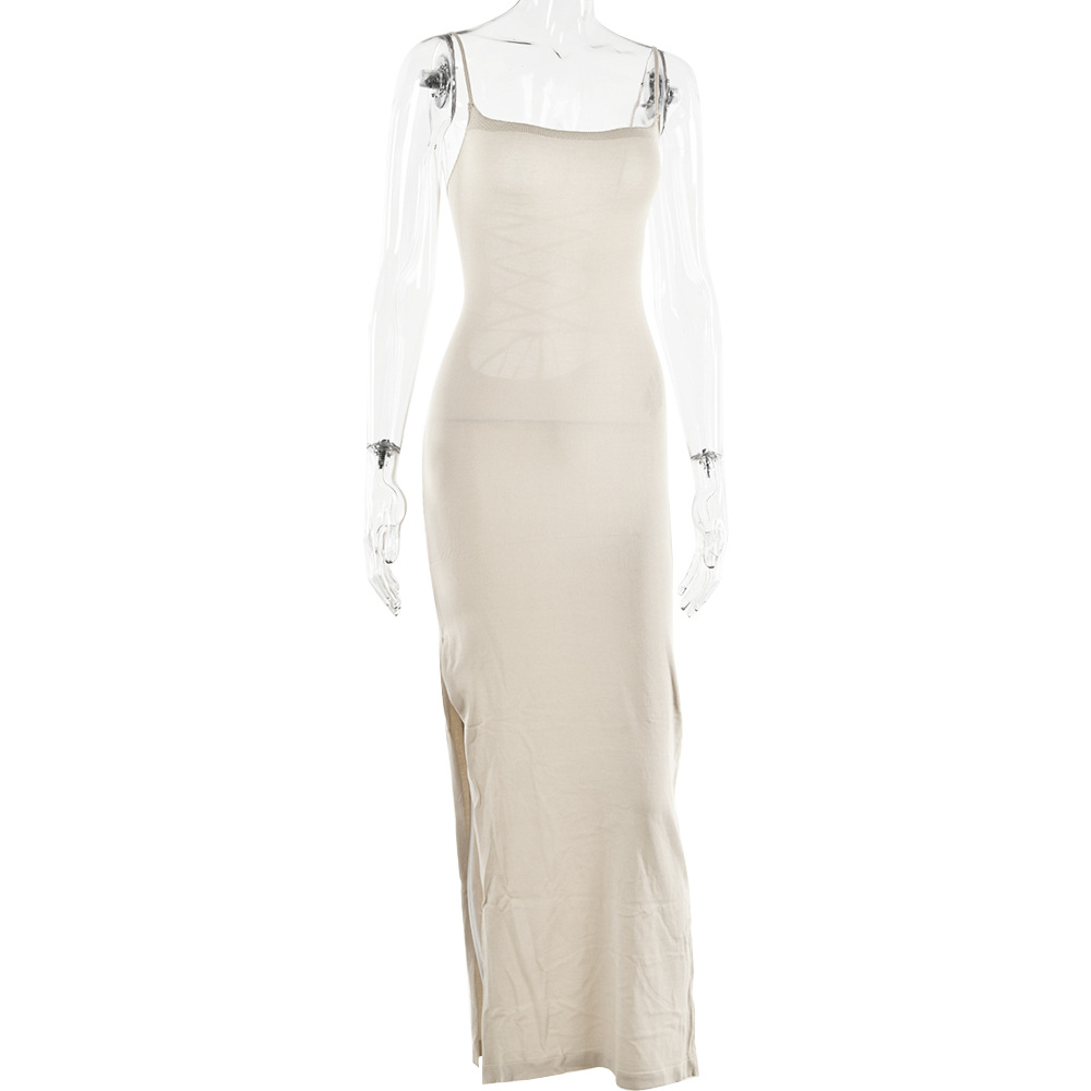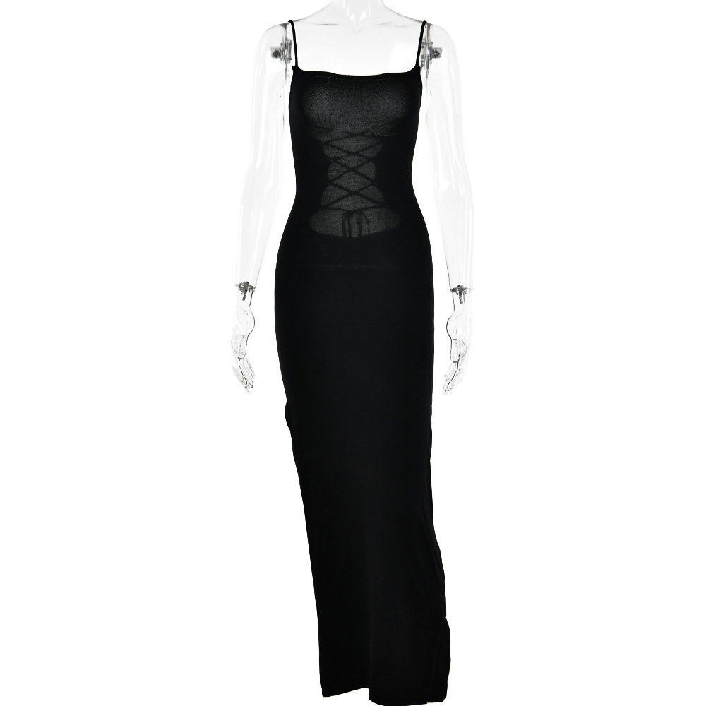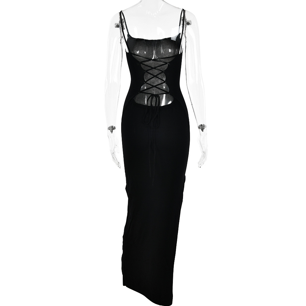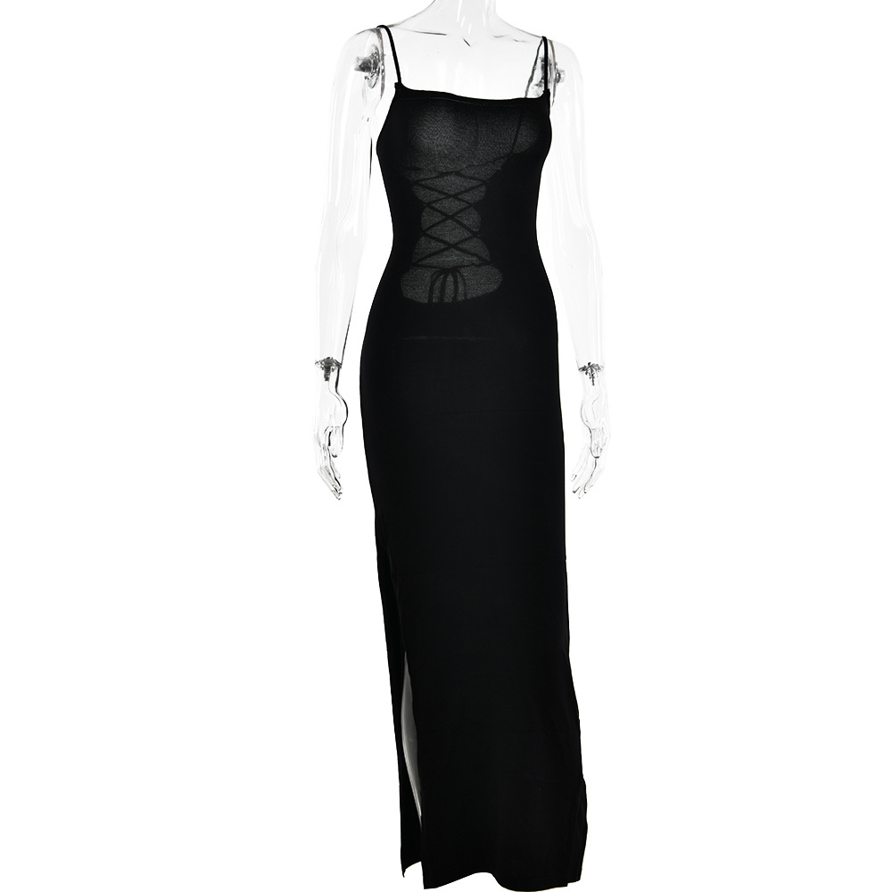 Robe à bretelles pures, robe fendue dos nu à lacets