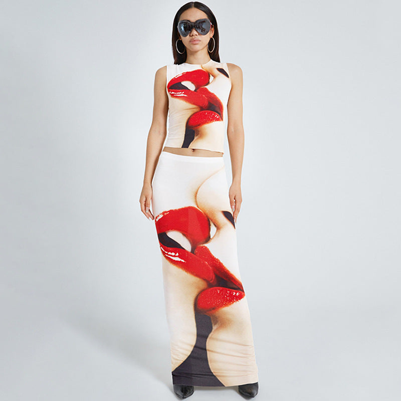 Ensemble jupe longue slim fit à imprimé véritable et personnalité Street