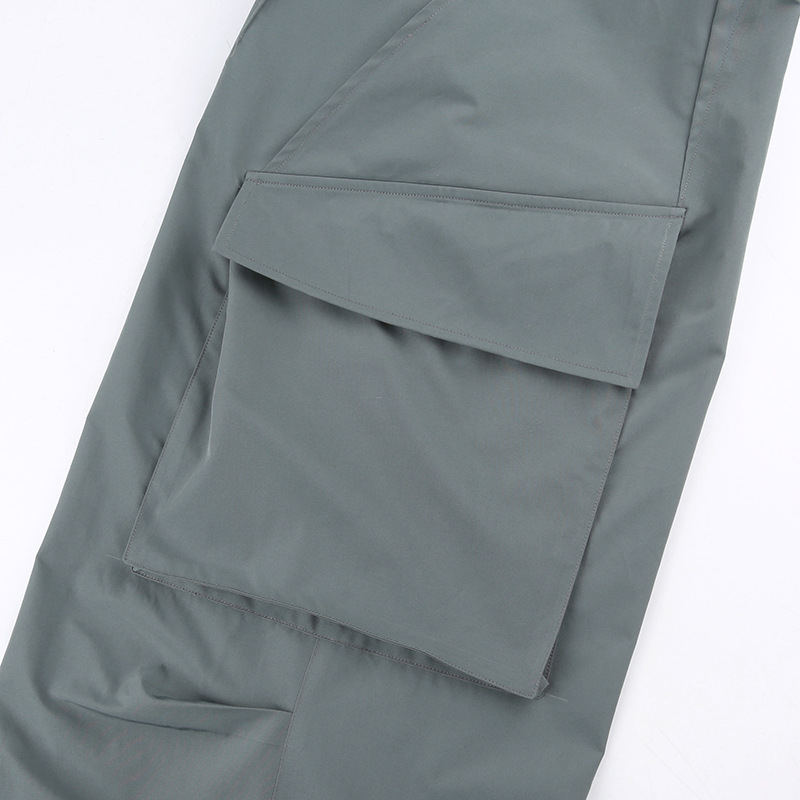 Salopette rétro verte taille basse avec poches, pantalon ample et droit, style urbain, décontracté