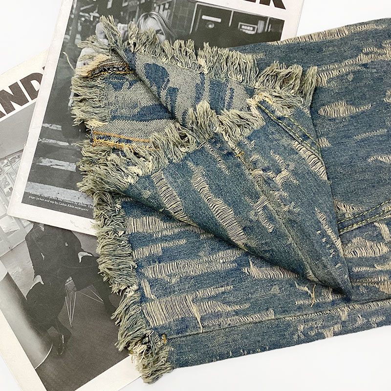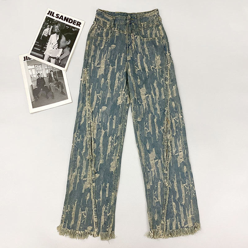 Jean skinny taille haute à pompons style rétro, pantalon droit amincissant