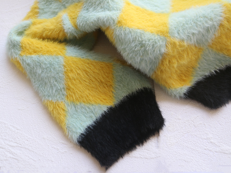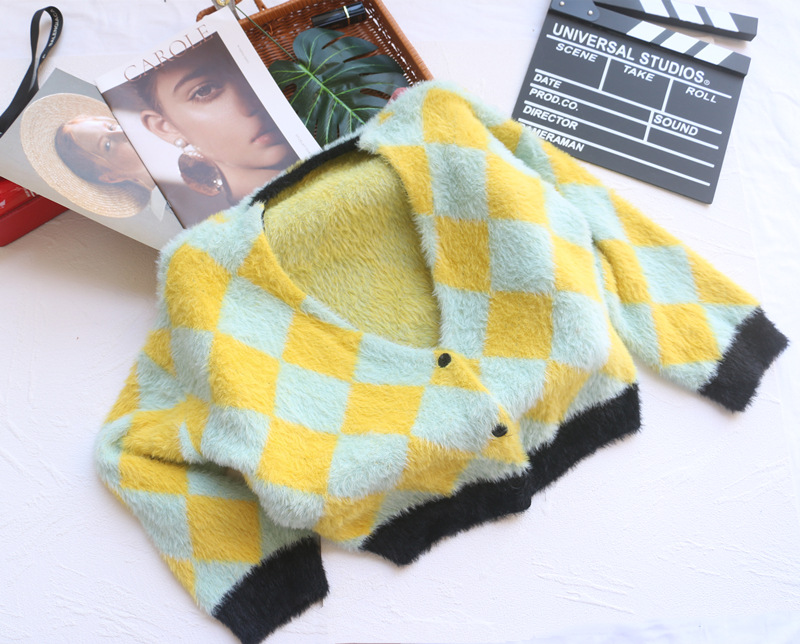 Cardigan court en peluche à motif de losanges rétro de haute qualité