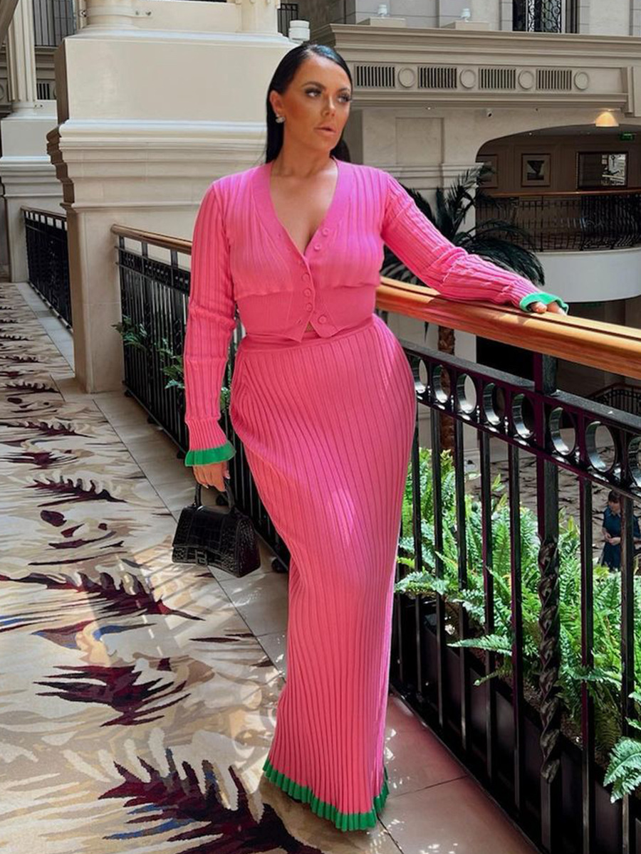 Ensemble jupe tricotée moulante à volants de couleur contrastée Ensemble deux pièces jupe