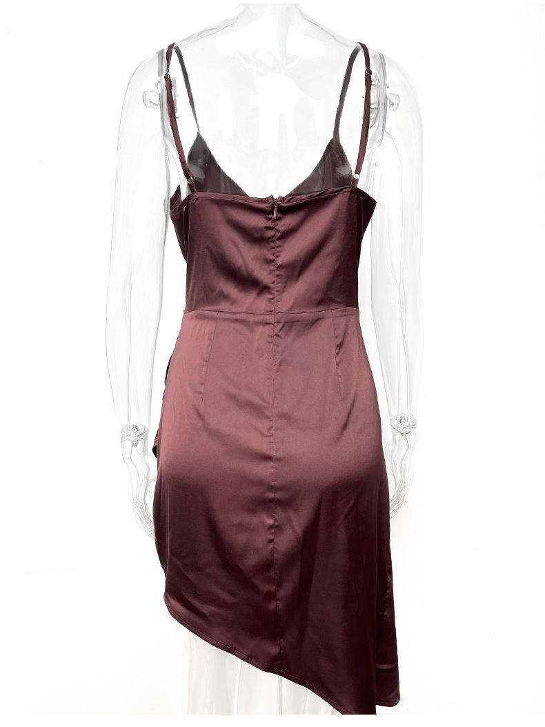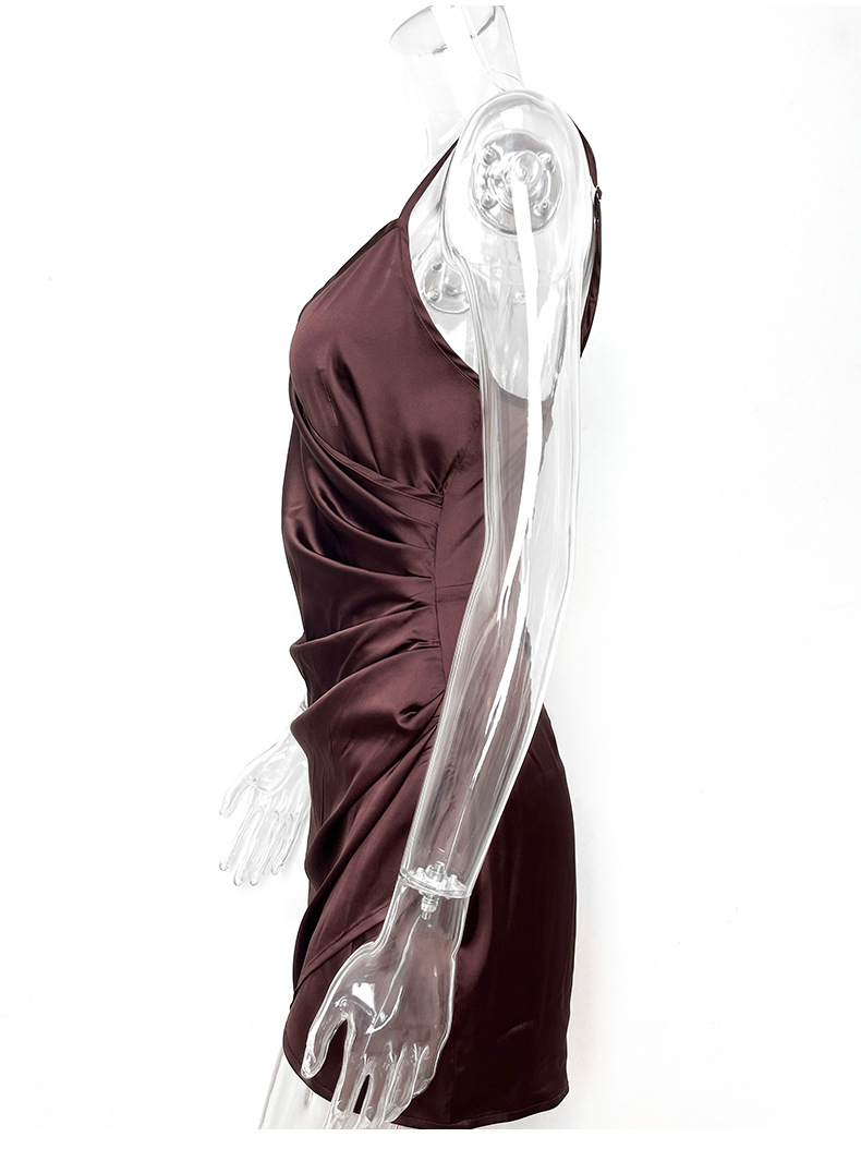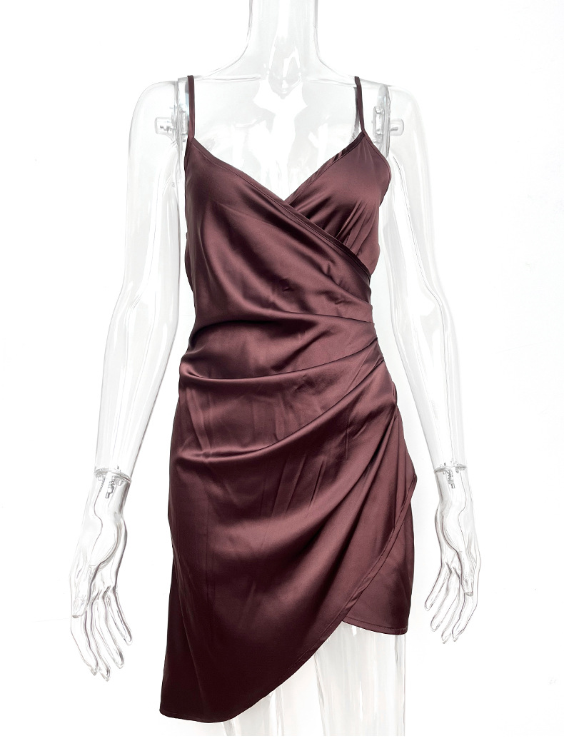 Robe fourreau en satin plissée, robe camisole asymétrique irrégulière en satin élastique