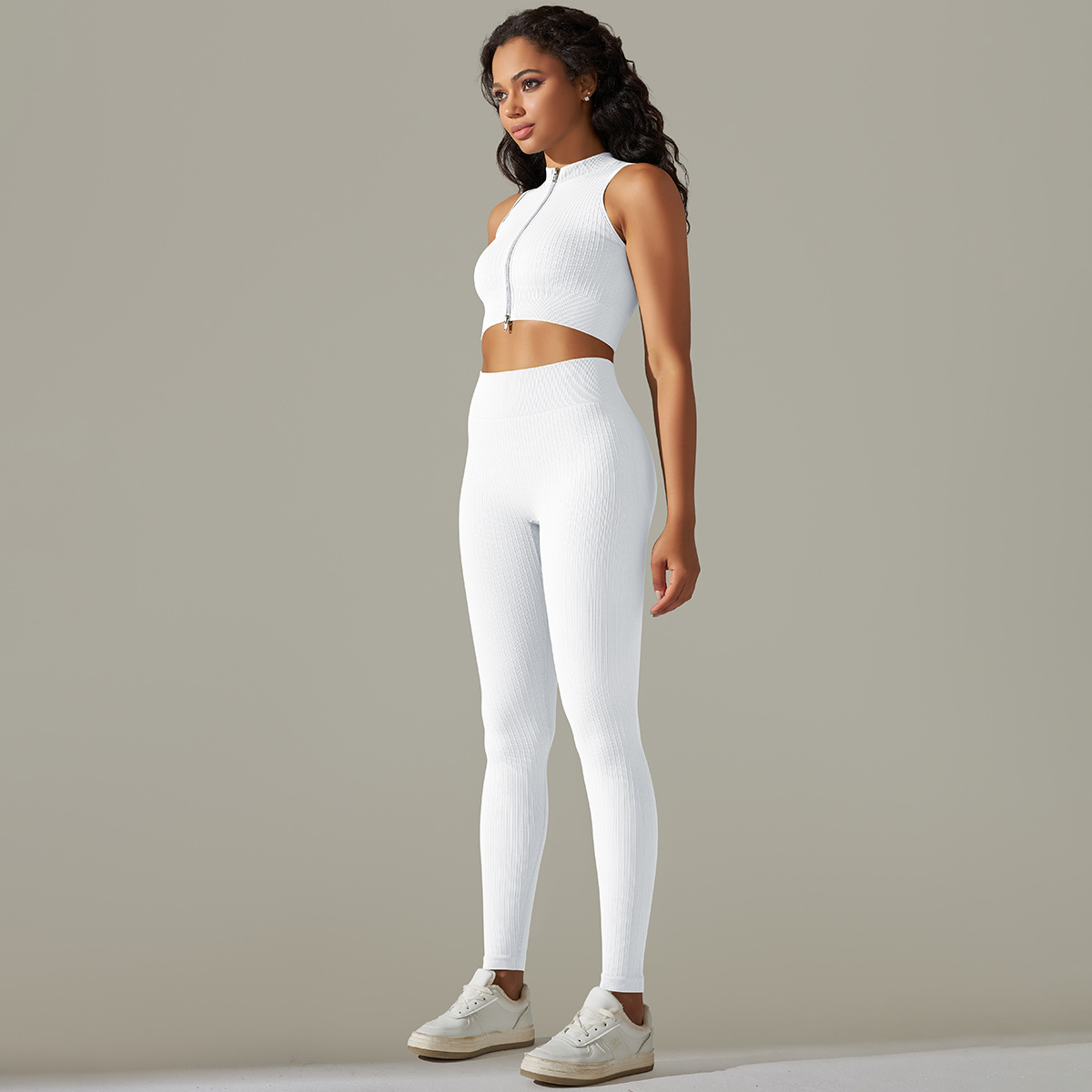 Gilet de sport tricoté sans couture avec fermeture éclair et pantalon de yoga