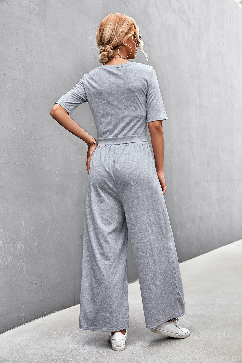 Combinaison ample à manches courtes et col en U