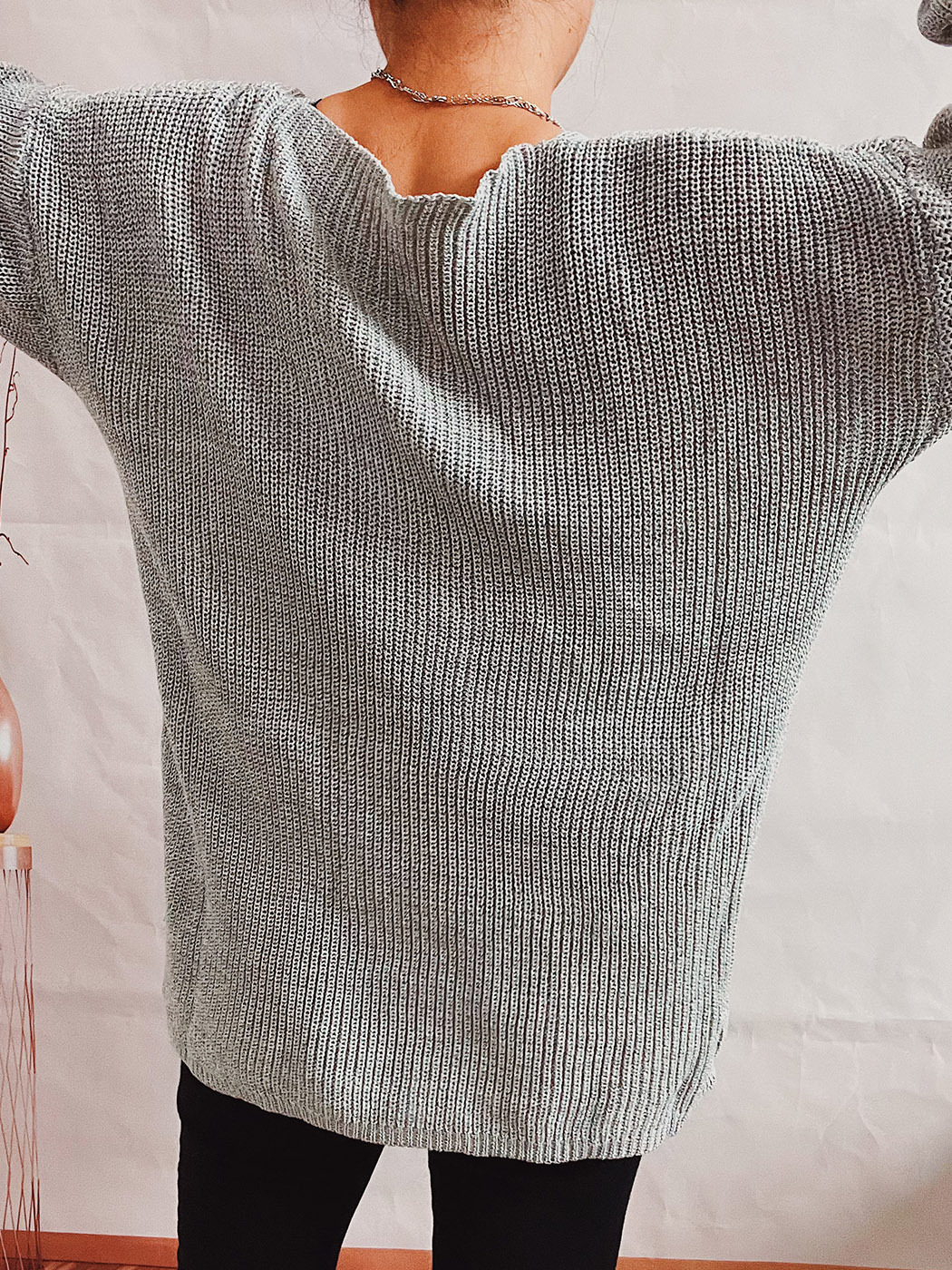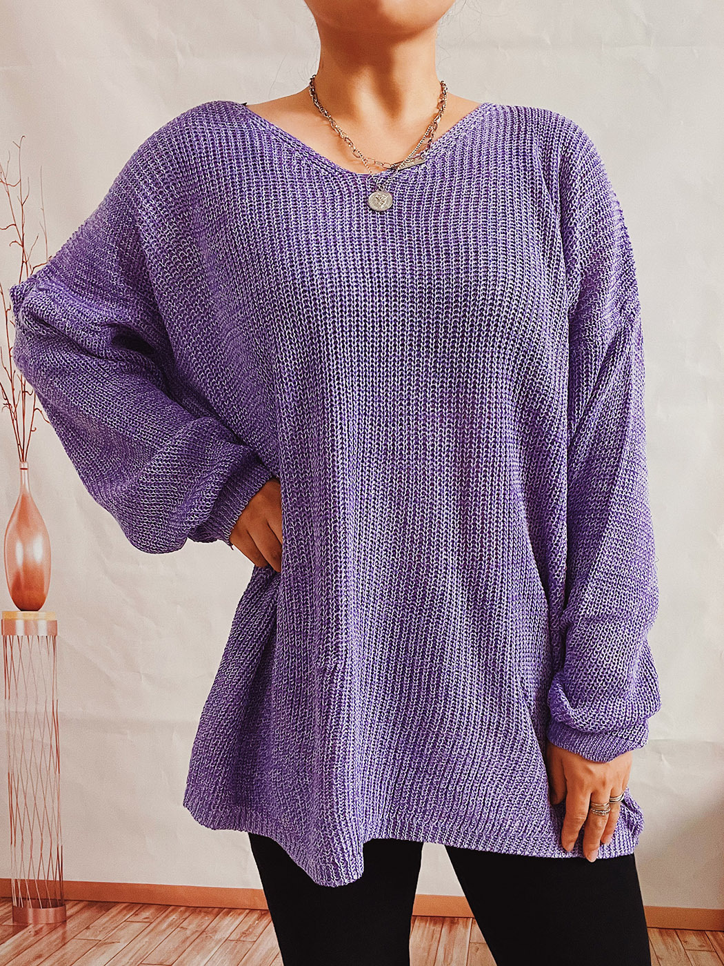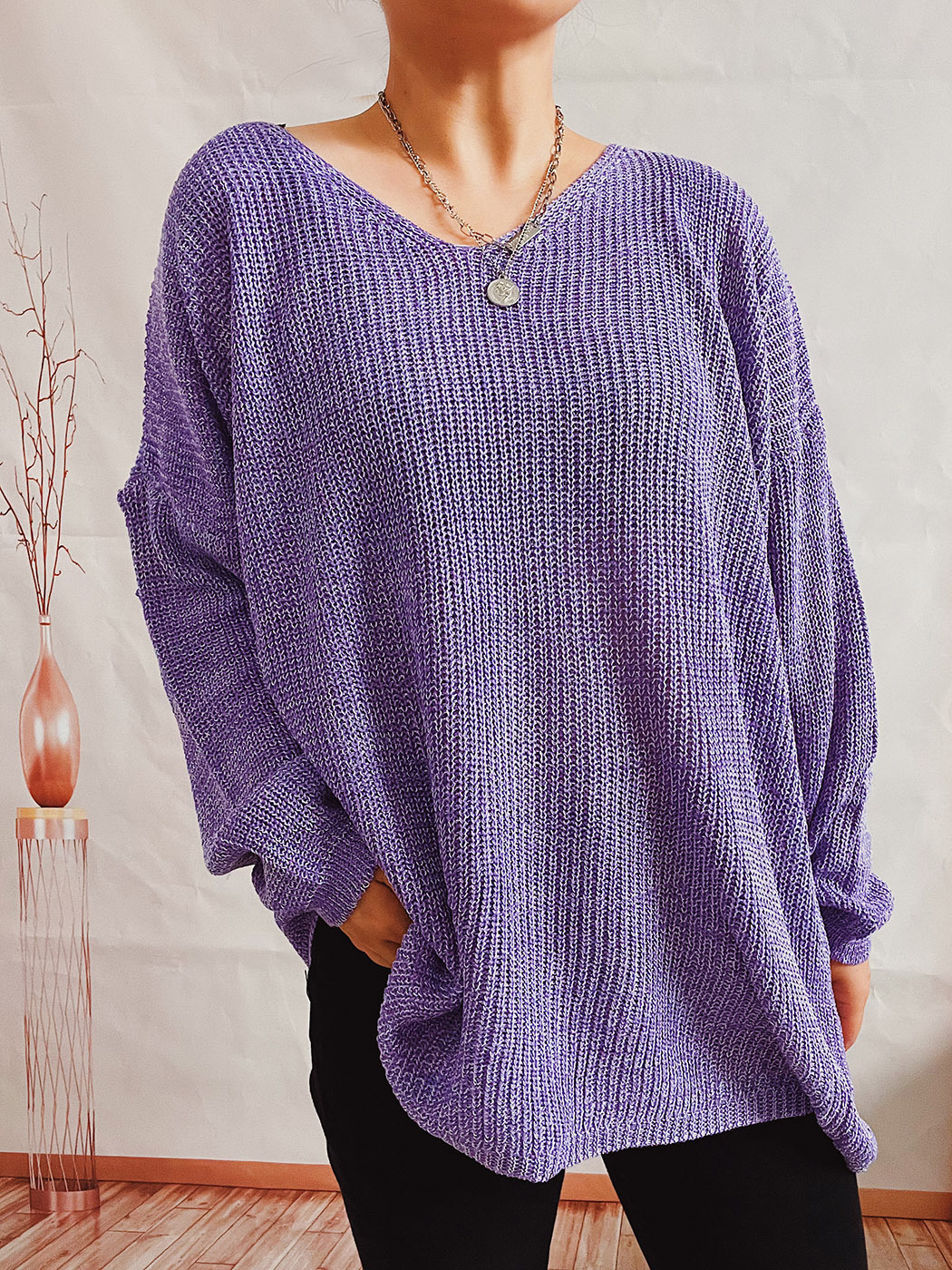 Pull simple, ample, couleur unie, col en V, manches longues, tricot fin