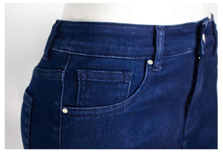 Pantalon crayon en denim slim bleu foncé amincissant taille moyenne