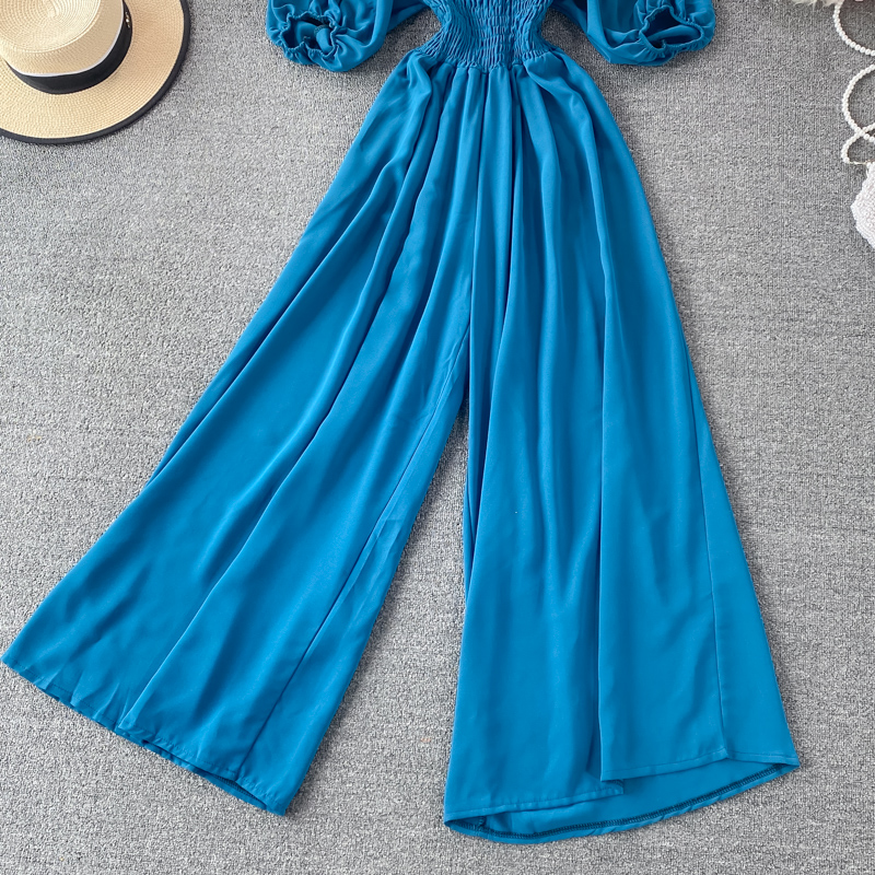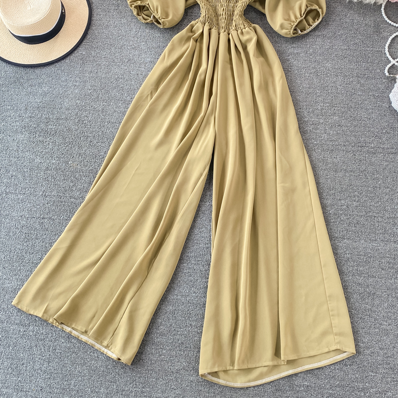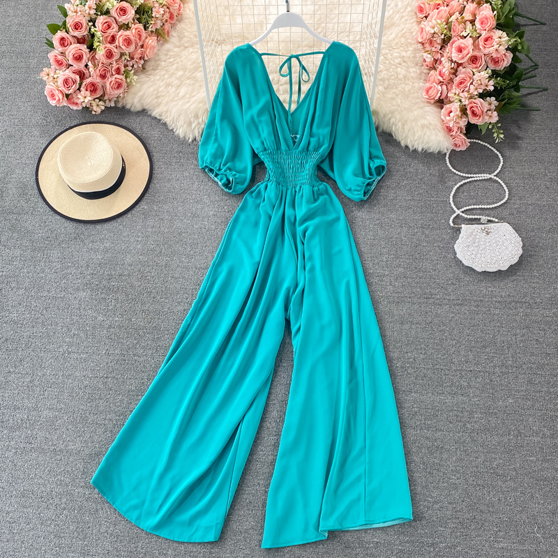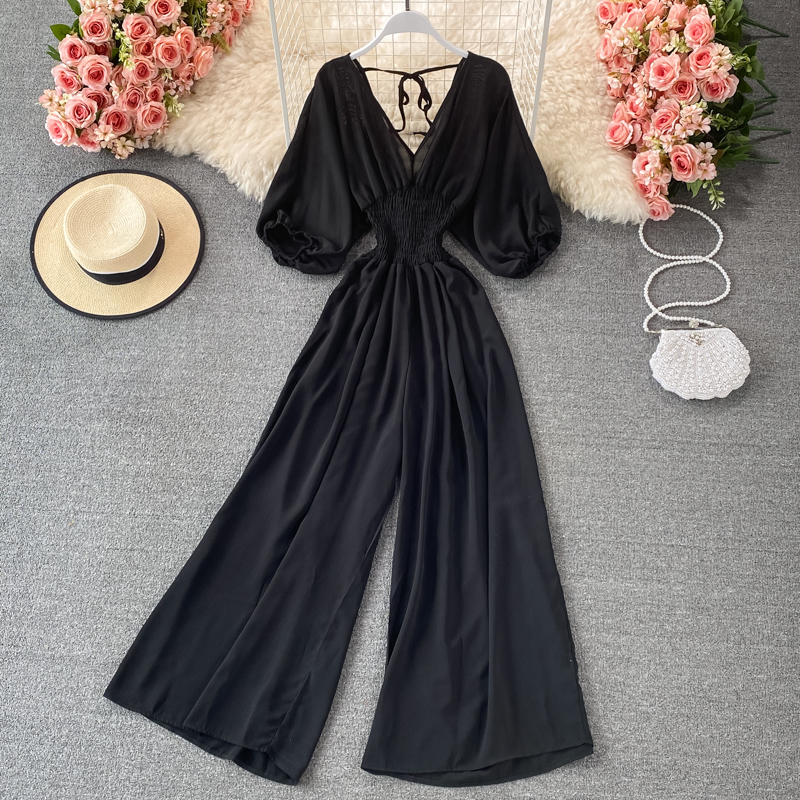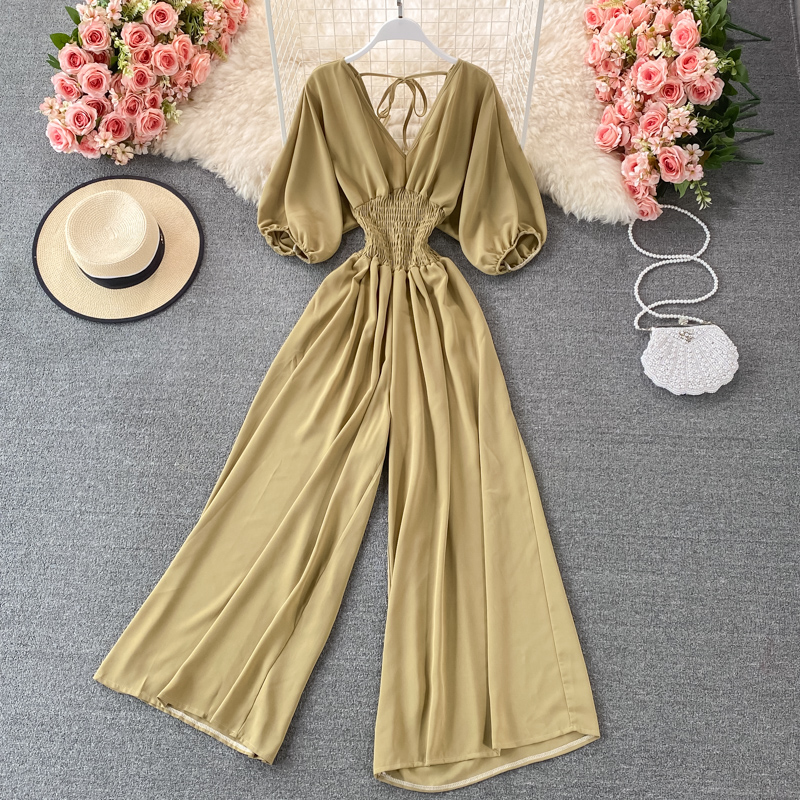 Combinaison élégante à col en V, coupe droite, jambes larges, légère, luxueuse, dos nu, décontractée