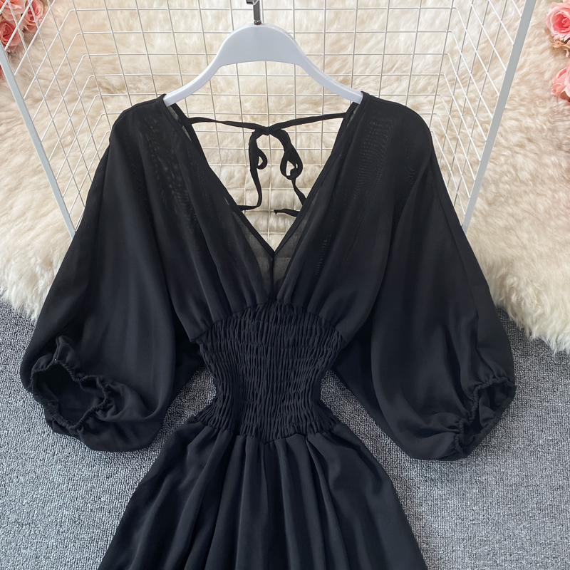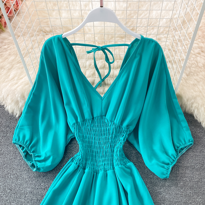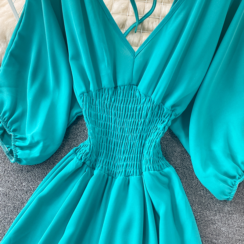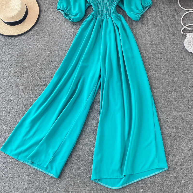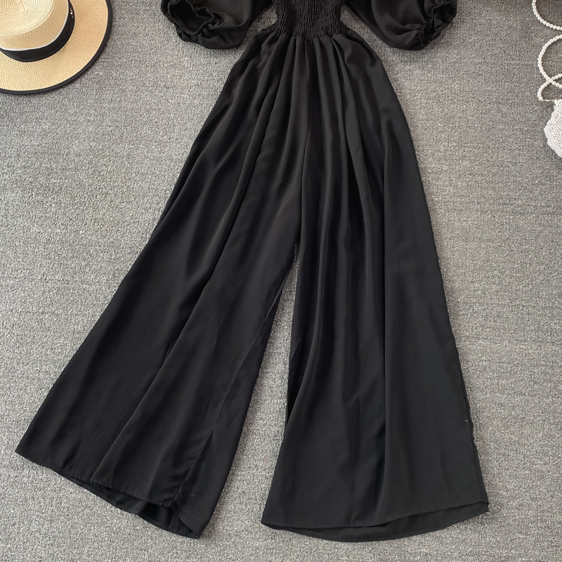 Combinaison élégante à col en V, coupe droite, jambes larges, légère, luxueuse, dos nu, décontractée