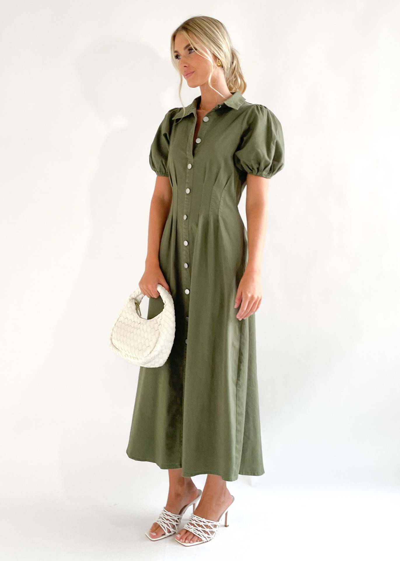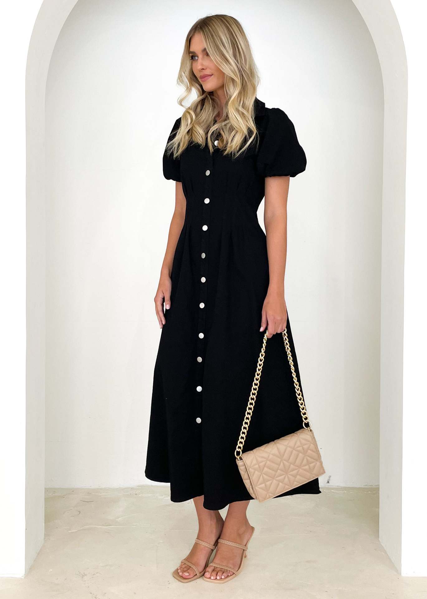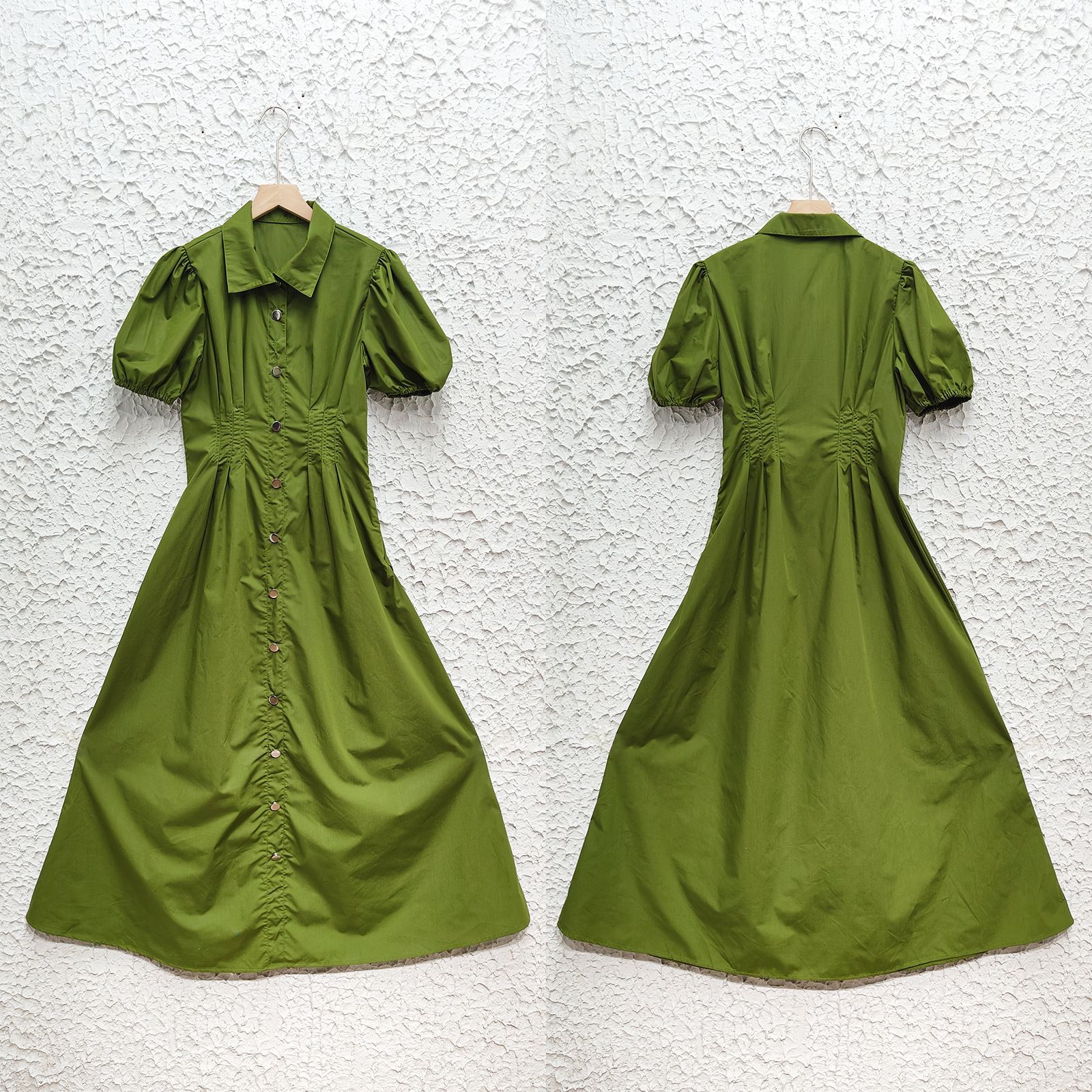 Robe décontractée à taille haute et col boutonné de couleur unie
